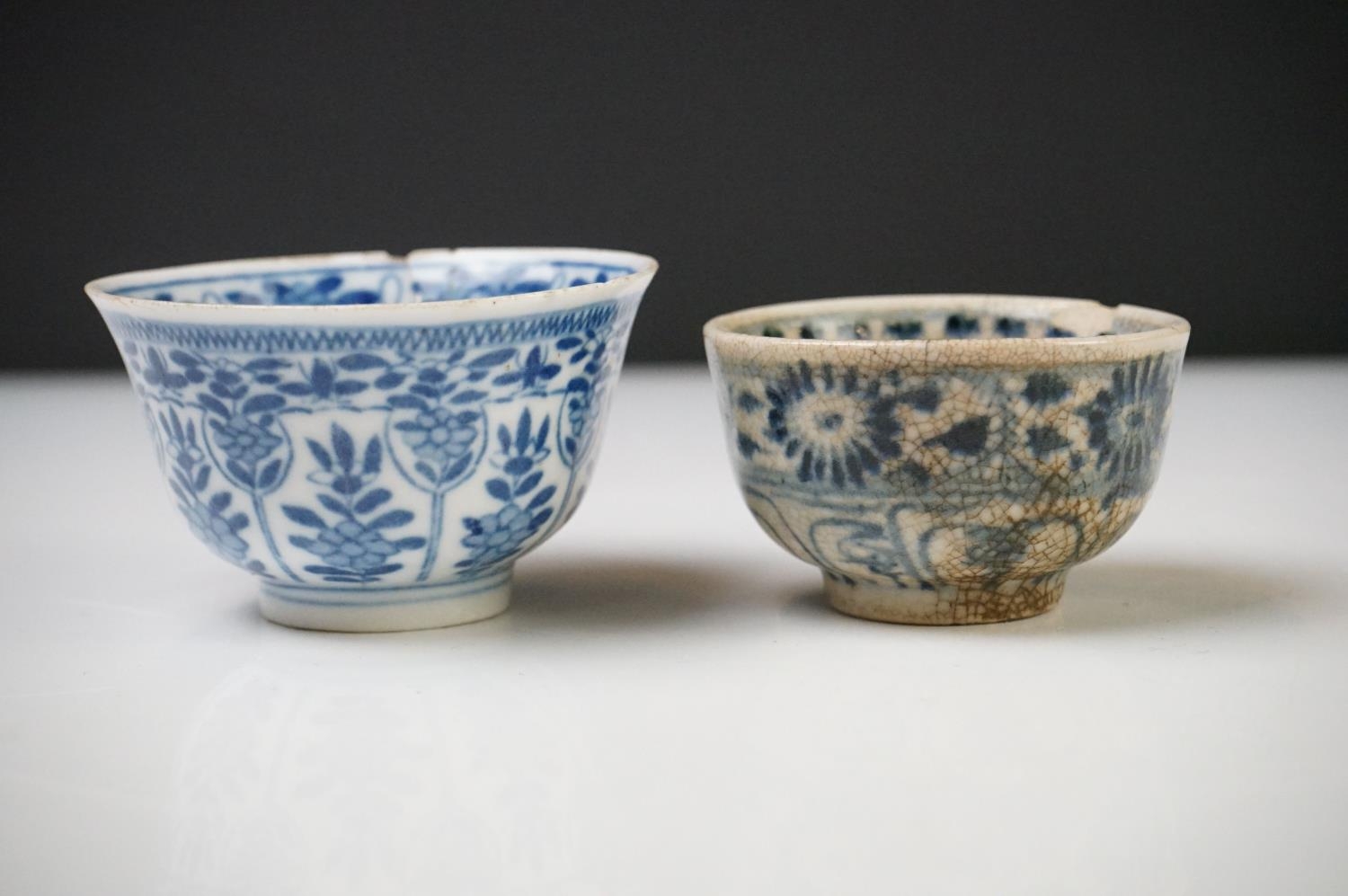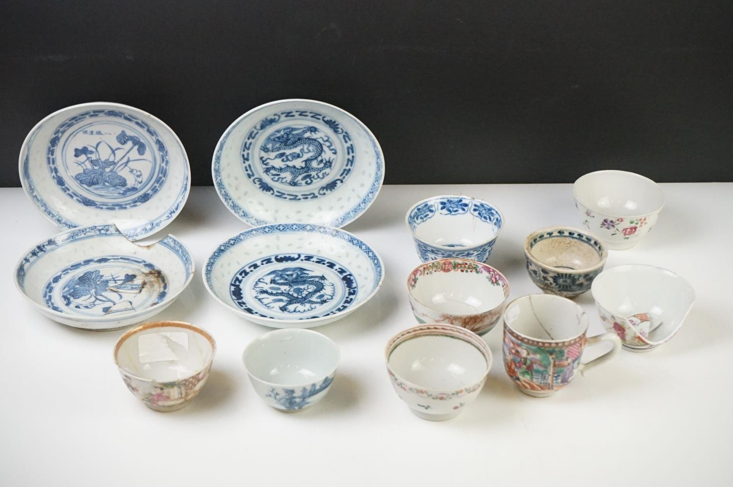 Collection of Chinese Tea Bowls, Cups and Saucers, 18th century onwards, mainly famille rose and blue and white including eight tea bowls, cup and four saucers, some a/f