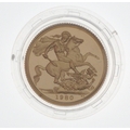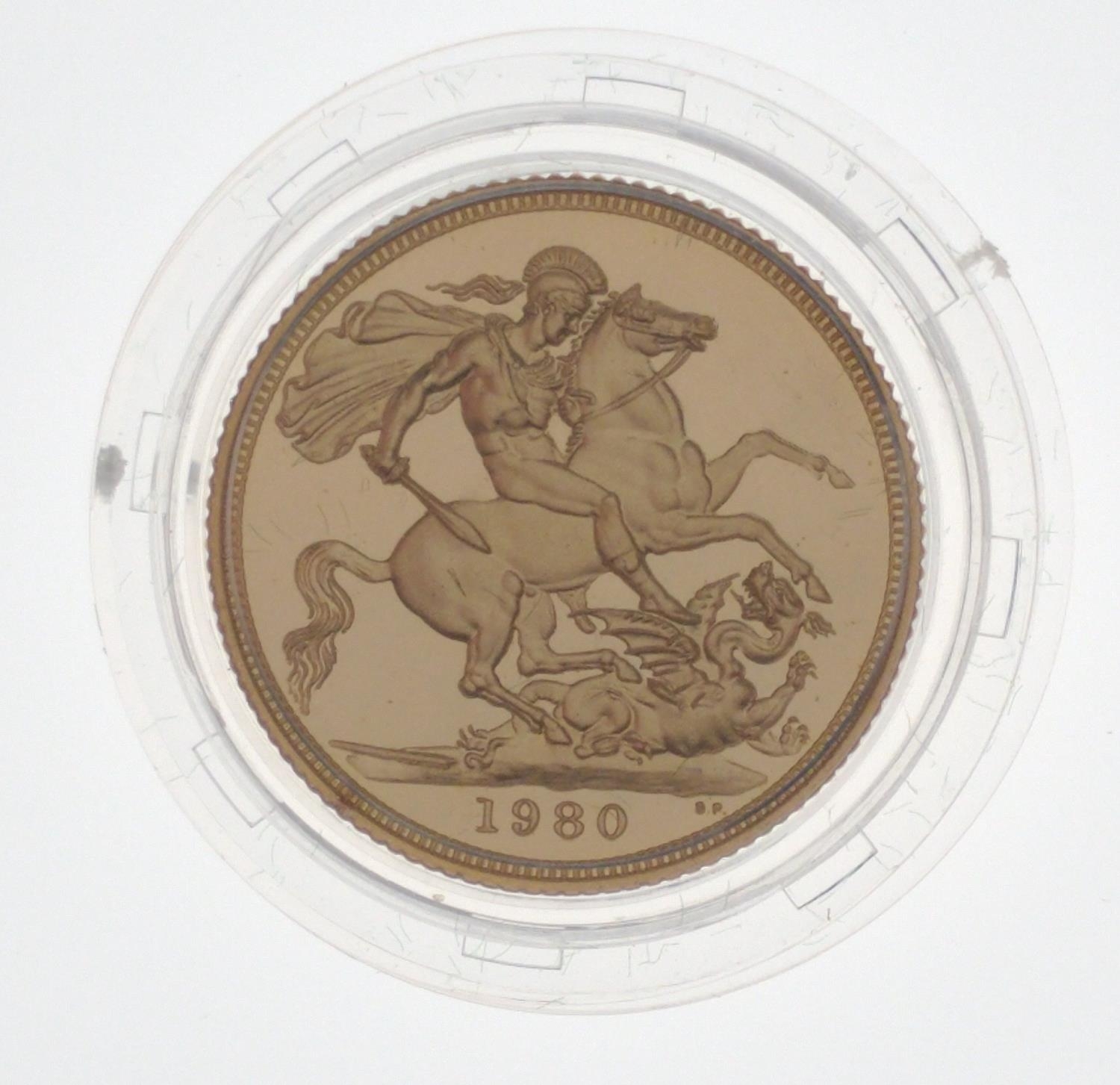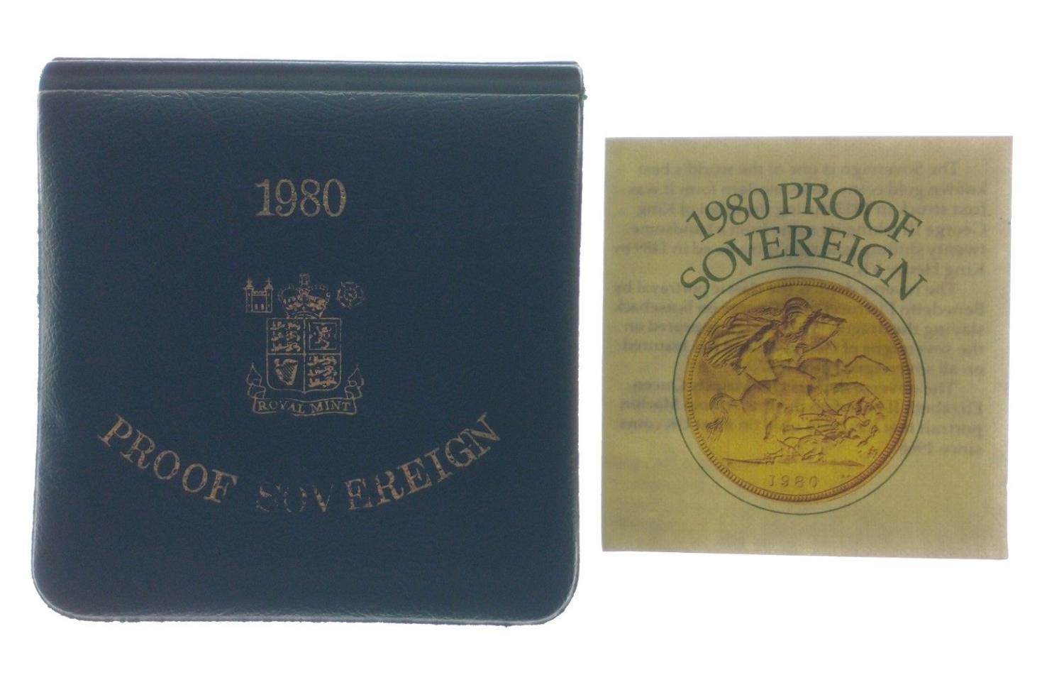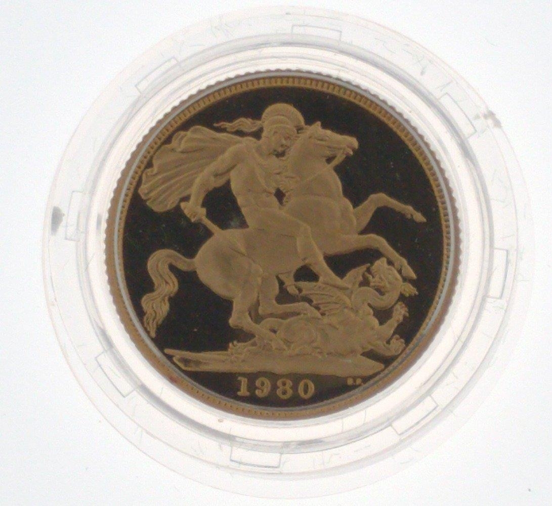 INVESTMENT BUY! A 1980 GOLD PROOF QUEEN ELIZABETH II FULL SOVEREIGN MINT 7.988g/0.257 Troy Ounce within original presentation case and plastic protector covering with ROYAL MINT CARD - THIS IS A MINT COIN WITH EXTRA SHARP DETAIL!!