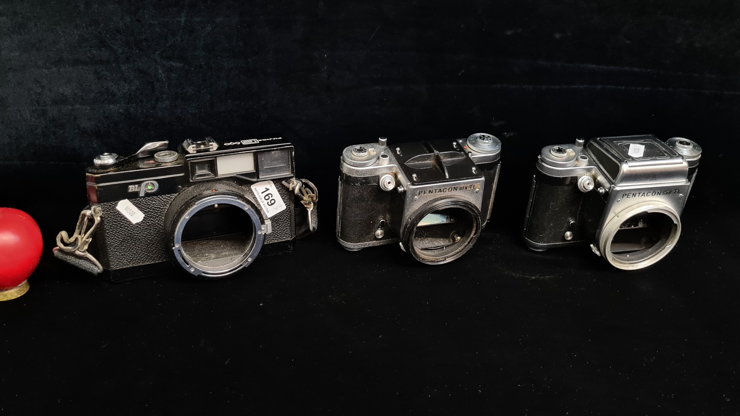Three vintage medium format camera bodies including two 'Pentacon six TL' examples and a Fujica G 690 example - RRP:€130 https://collectiblend.com/