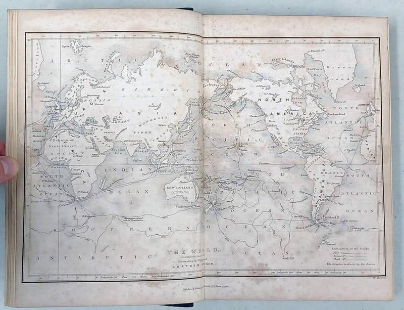 THE VOYAGES OF CAPTAIN JAMES COOK, ILLUSTRATED WITH MAPS & NUMEROUS ENGRAVINGS ON WOOD, IN 2 HALF LEATHER BOUND VOLUMES - 1842