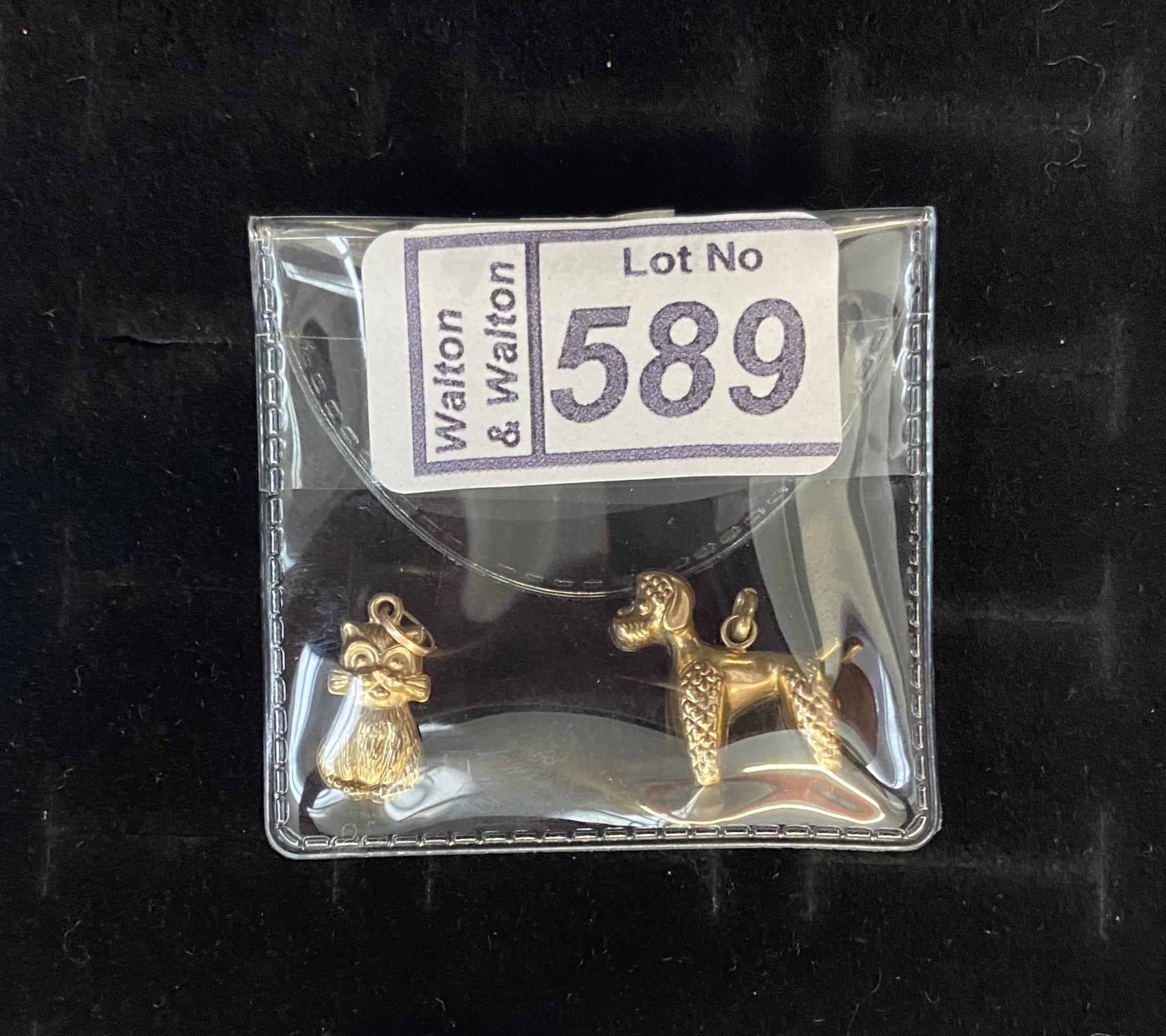 9ct Gold cat & poodle pendants - Only 10% buyer's premium