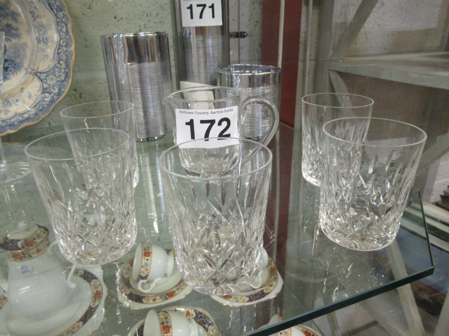 Set of 5 Waterford crystal whiskey glasses plus Waterford crystal jug.