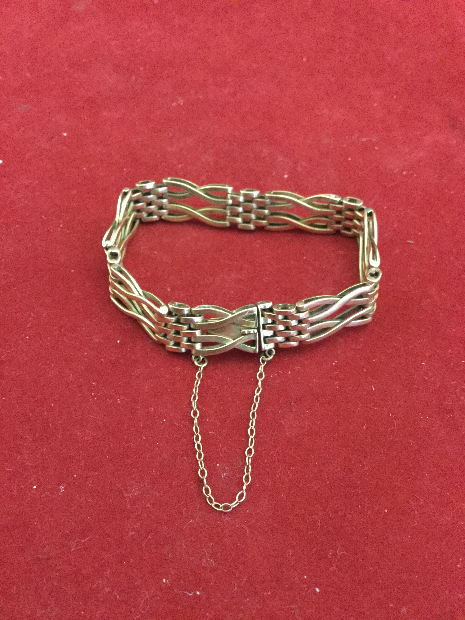 A 9ct gold gate style bracelet, with safety chain -