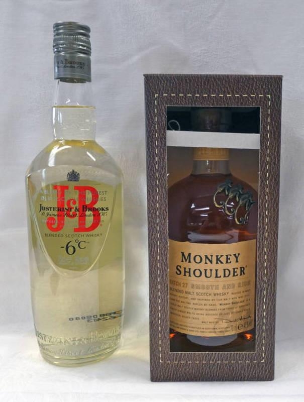 2 BOTTLES OF BLENDED WHISKY : JUSTERINI & BROOKS - 6, 70CL, 40% & MONKEY SHOULDER - 70CL, 40% VOL . BOXED
