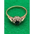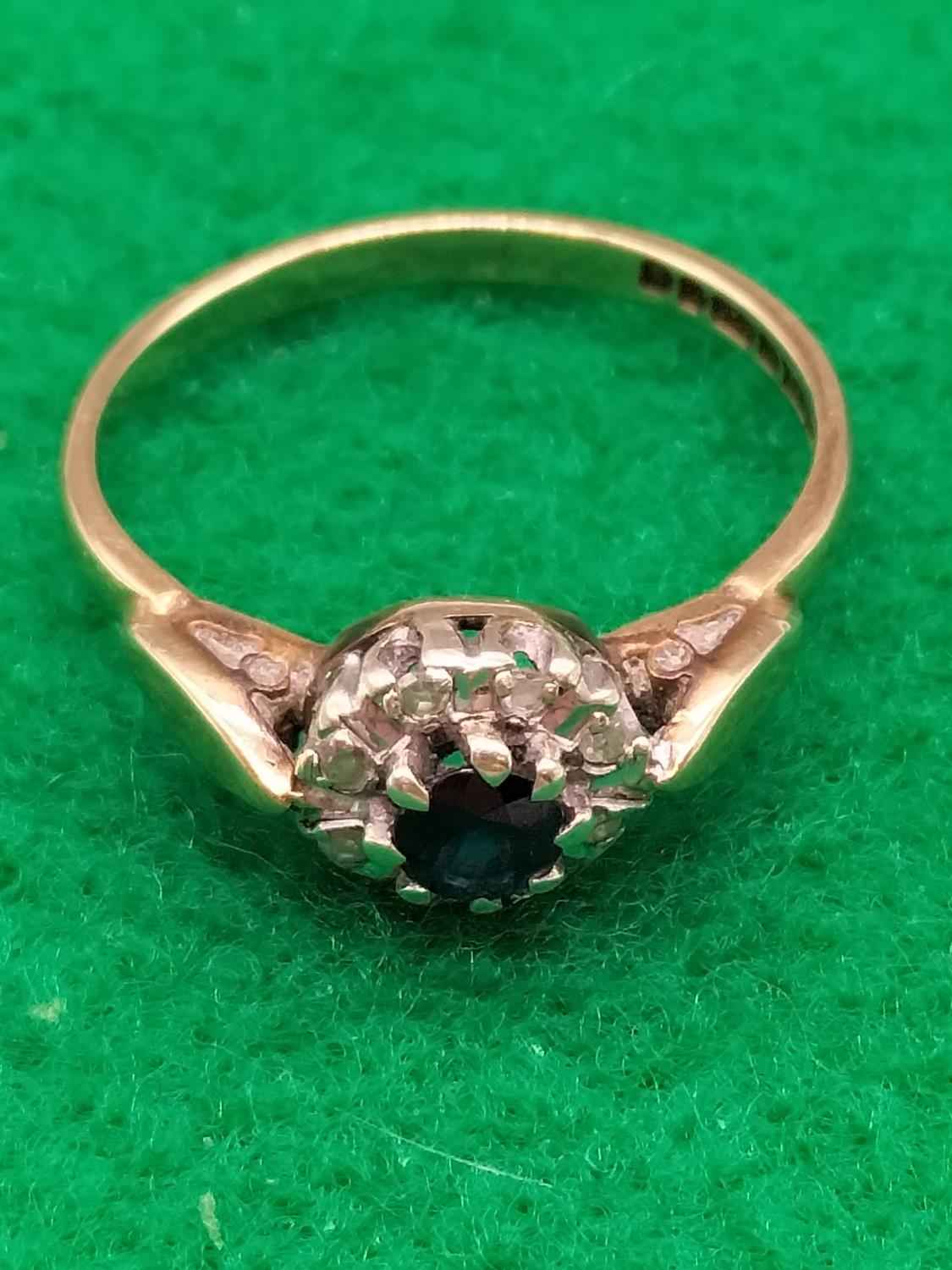 9ct Gold Sapphire and Diamond Ring. 2.1 Grams. Size M. 1 Stone Missing.