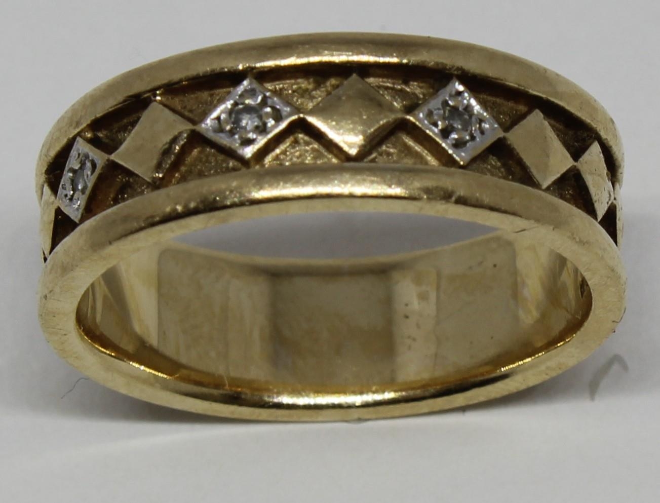 9ct GOLD DECORATIVE BAND SET 3 DIAMONDS (6.6g ) - SIZE S