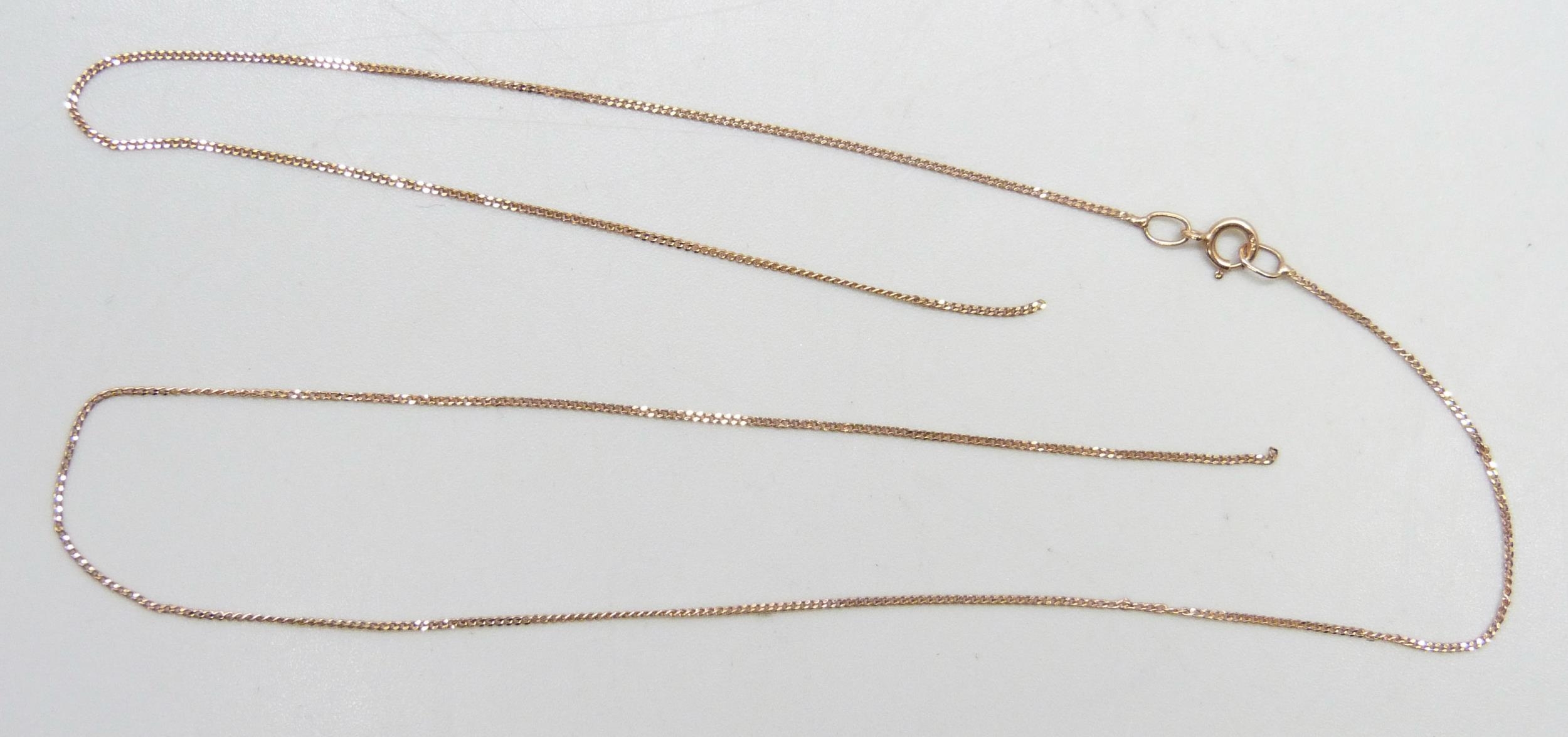 A 9ct rose gold chain, a/f, 0.6g