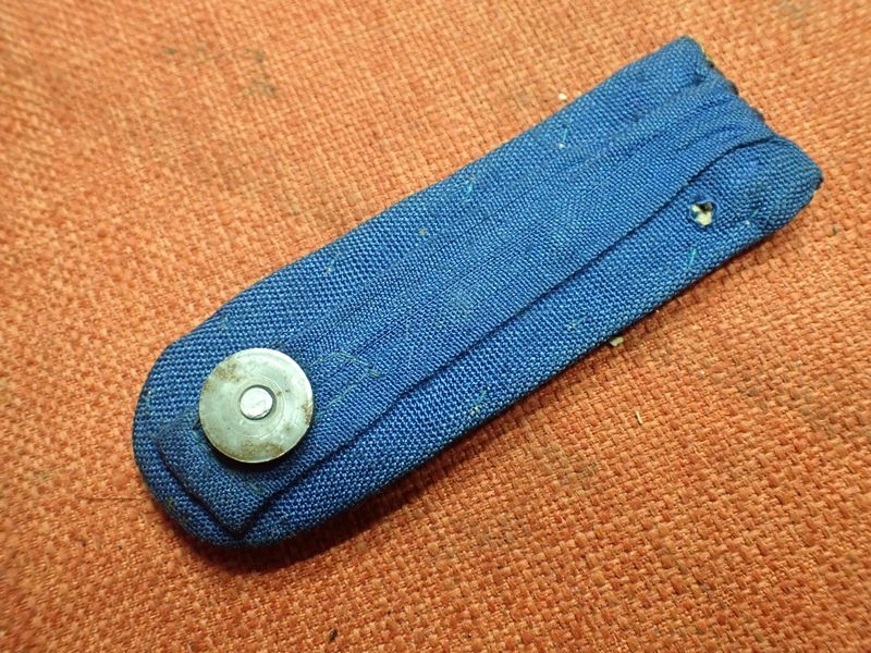 GOOD CONDITION STRAP COMPLETE WITH SCREW BASE BUTTON. GOLD COLOUR HAS DARKENED. 105 MM