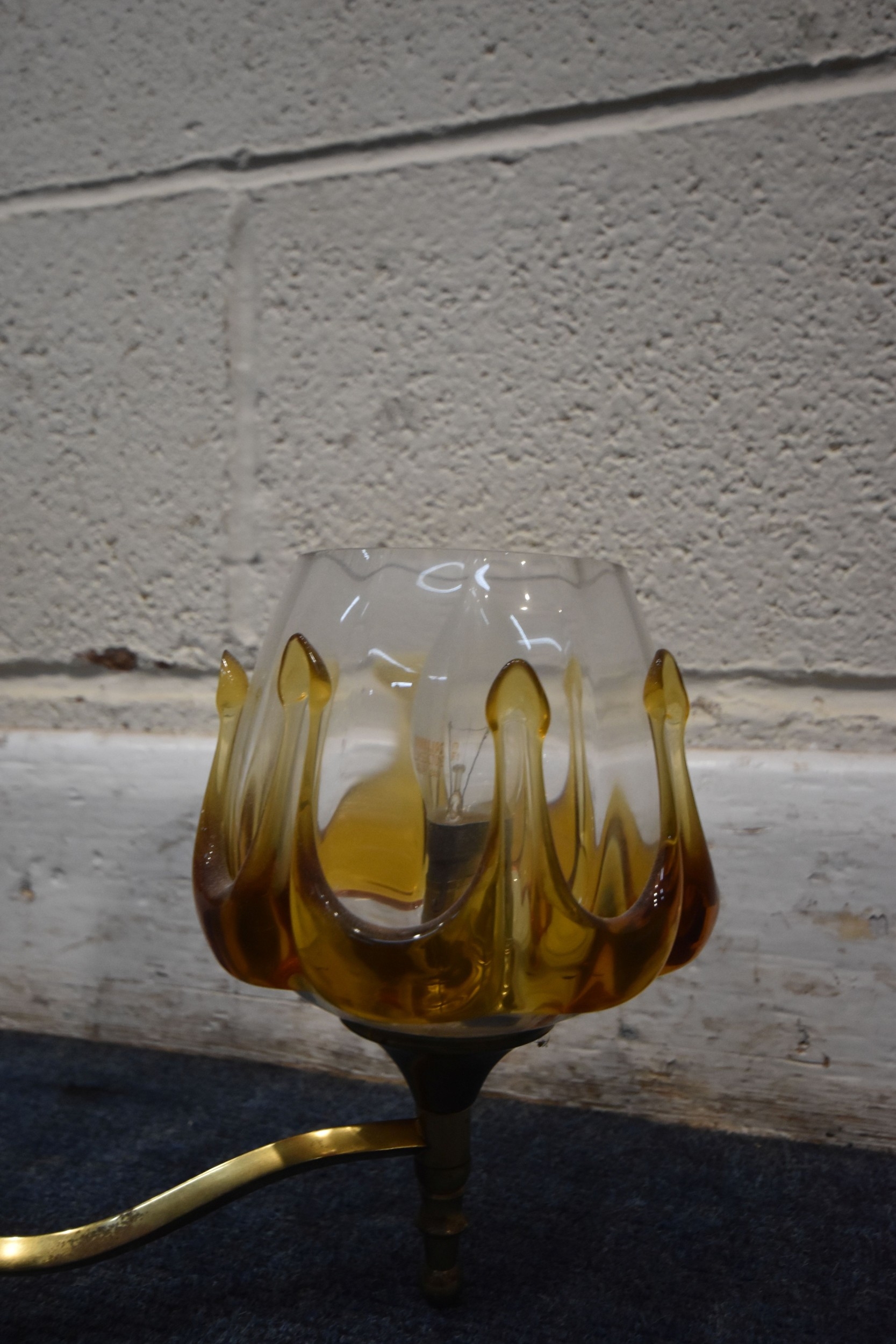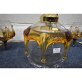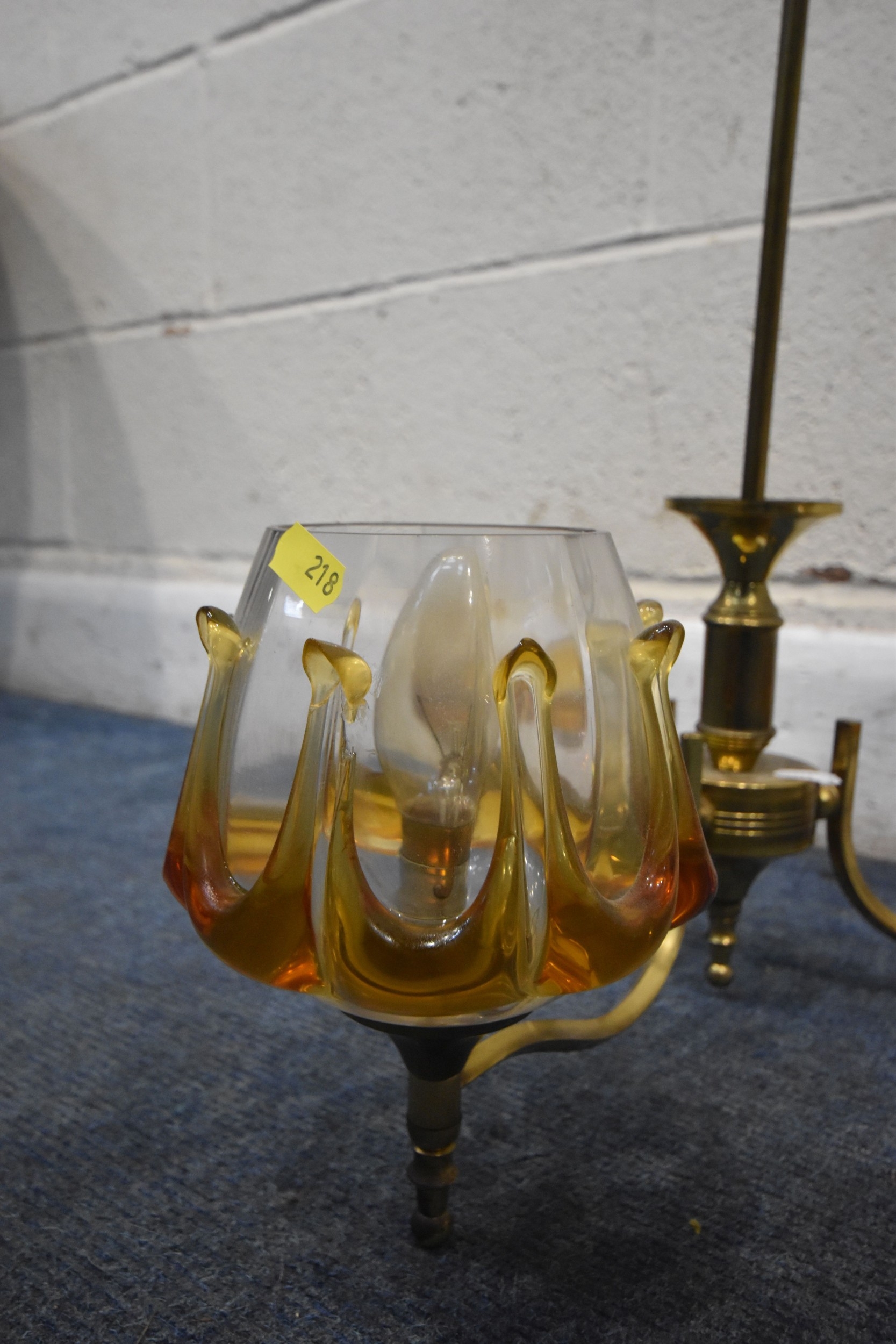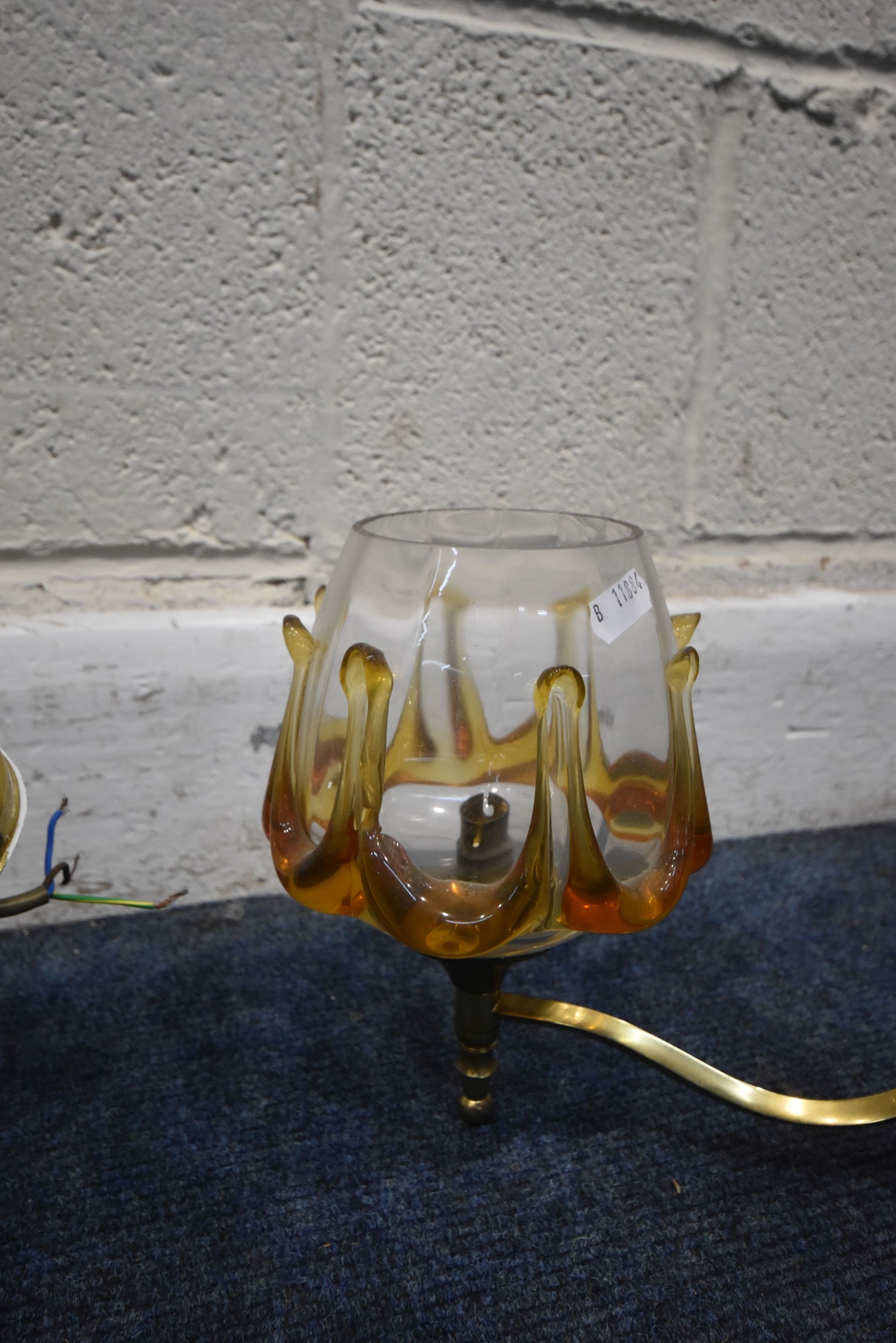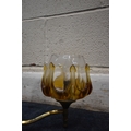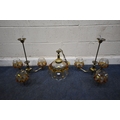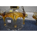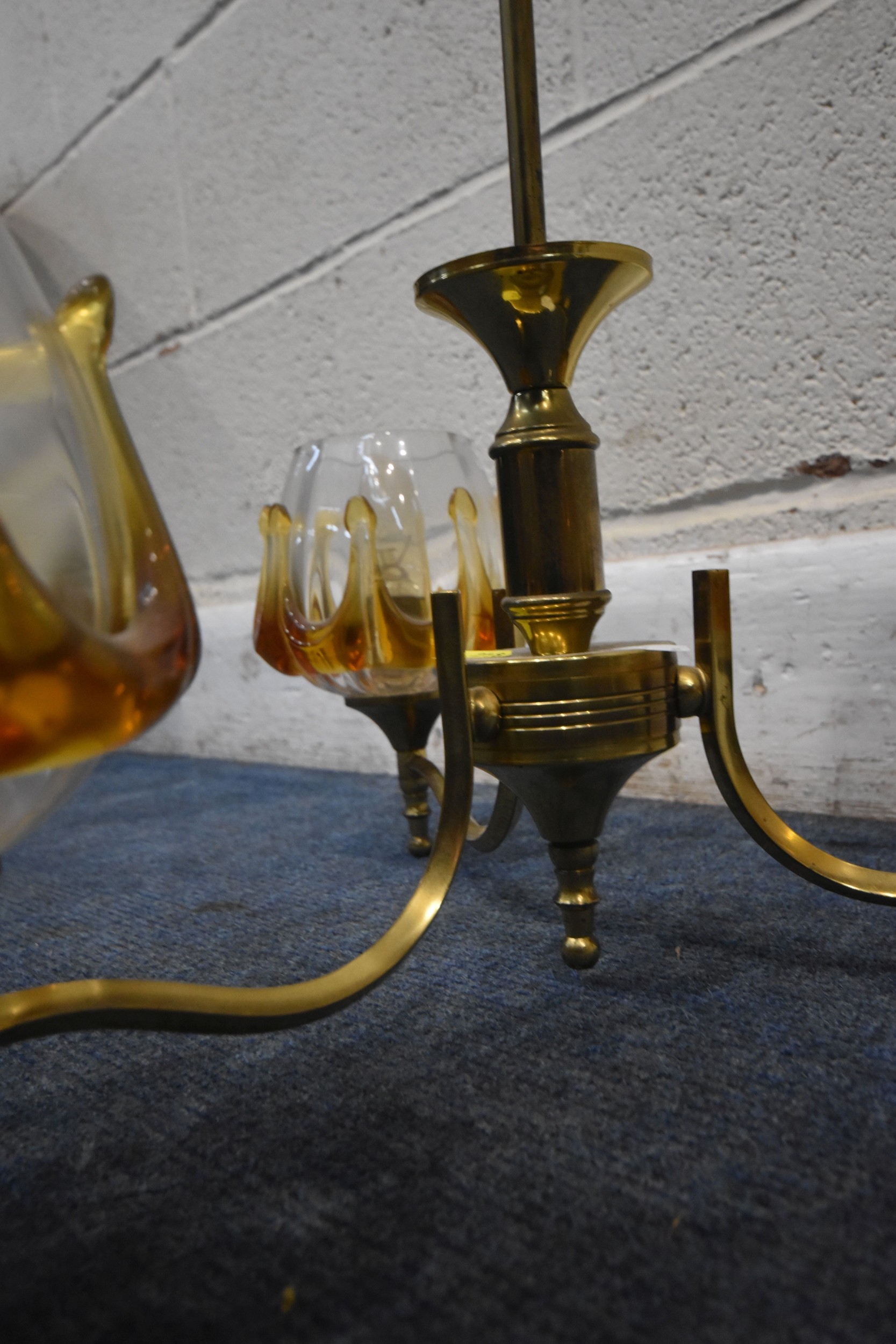 IN THE MANNER OF CARLO NASON MAZZEGA, A PAIR OF MID-CENTURY THREE BRANCH CEILING LIGHTS, with amber drip design shades, along with a matching ceiling light with a single shade, condition report: overall good condition, cables cut (3)