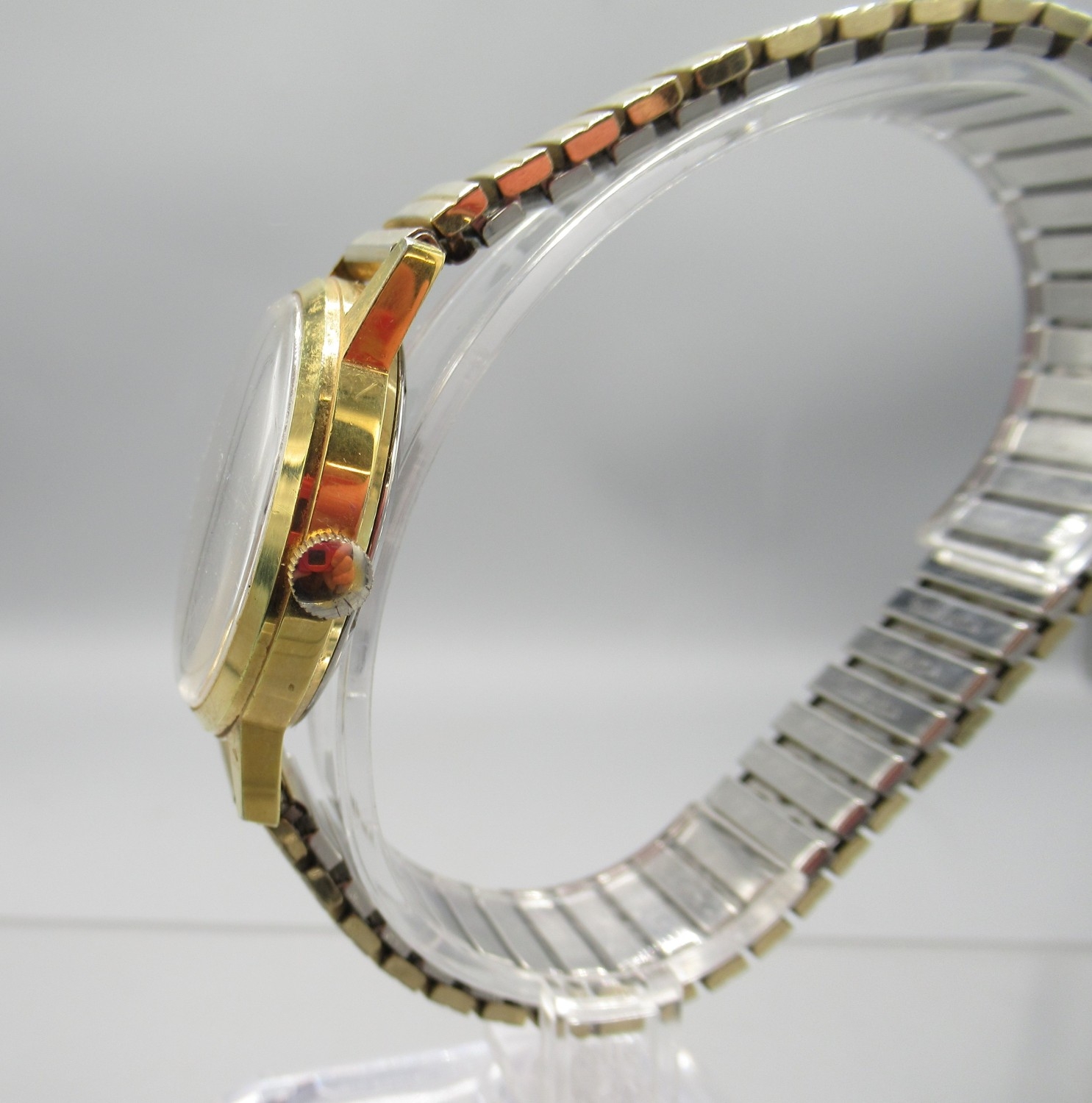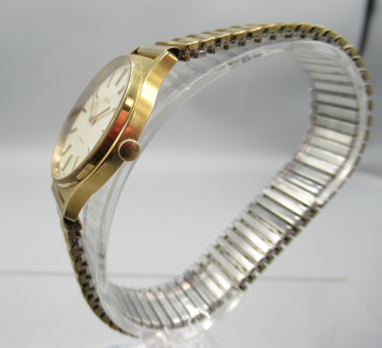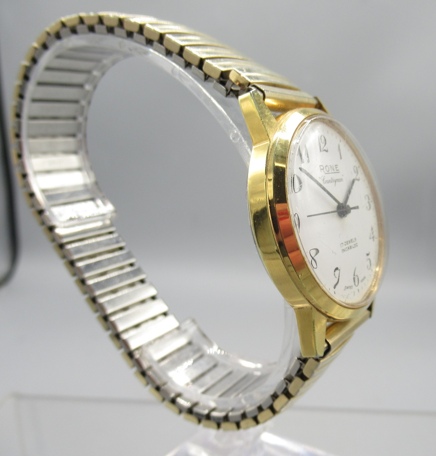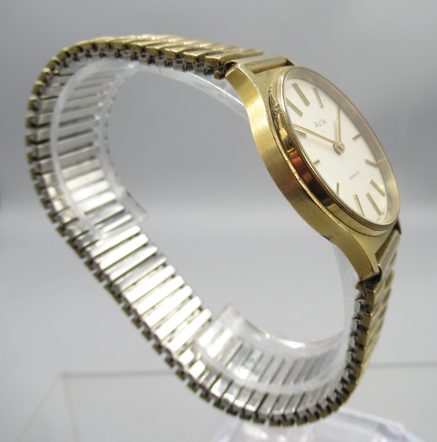 Rone Countryman gold plated wristwatch, signed white Arabic dial with centre seconds, screw on case back no. 1188CM, hand wound 17 jewel movement, D34.2mm with original box and guarantee and Avia gold plated hand wound wristwatch, D33.2mm