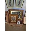 BOX OF PICTURES, TRAY, ETC