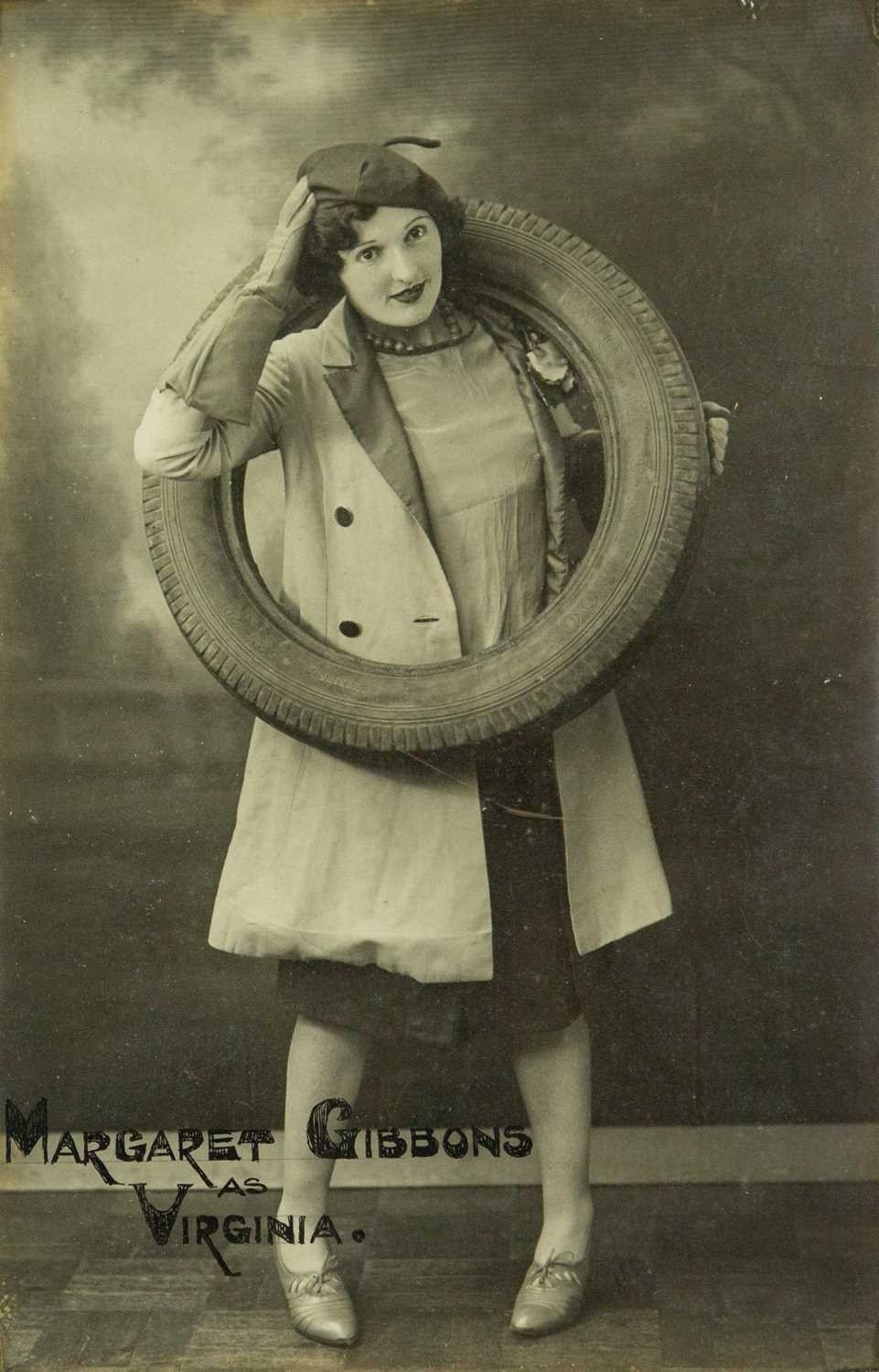 Five vintage actress photographs. All in black and white of Margaret Gibbons, one as Virginia, one from a production of The Mikado indistinctly signed in pencil to the bottom right, and three others, 32cm x 47cm and smaller (5).