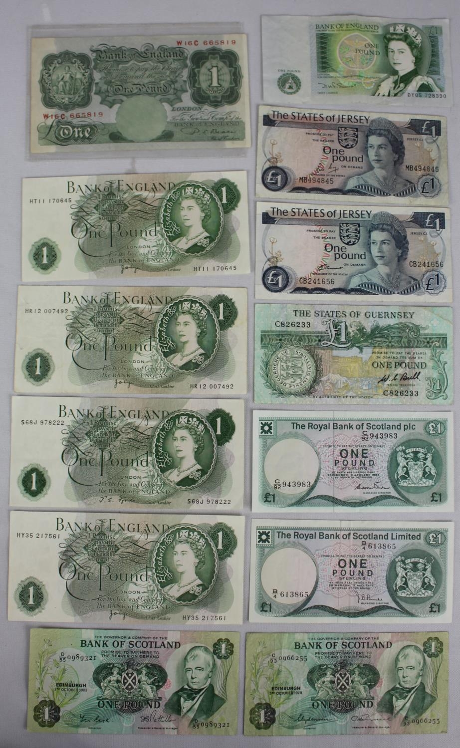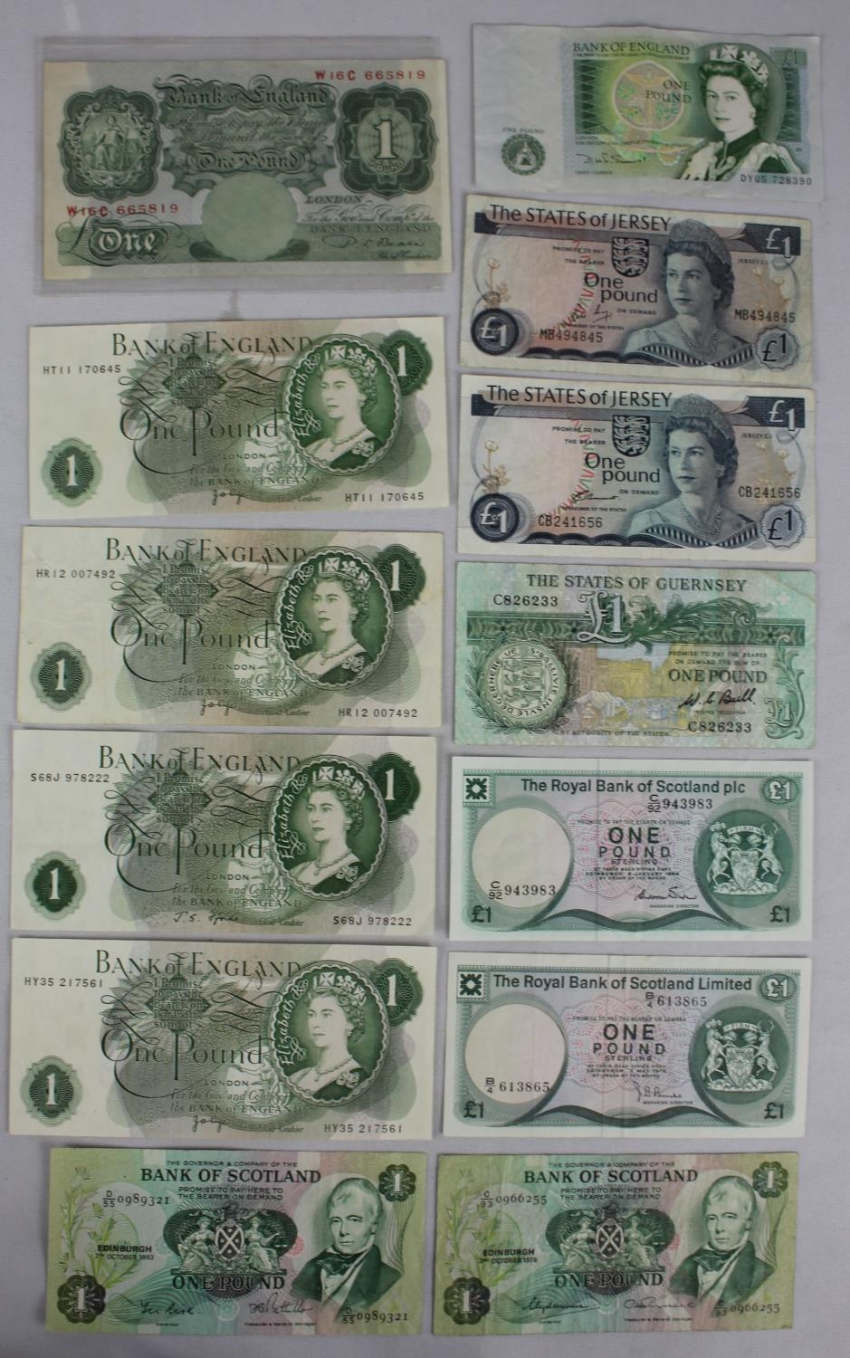13 VARIOUS £1 BANKNOTES