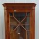 Yew Wood Reproduction Flat Fronted Standing Corner Cabinet, glazed door over, under dentil cornice