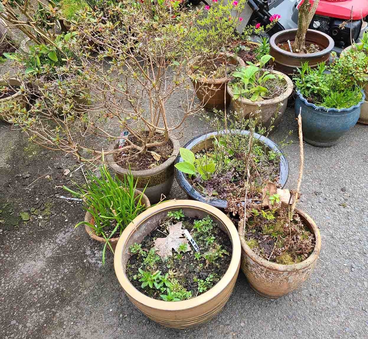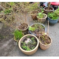 Five assorted garden pots