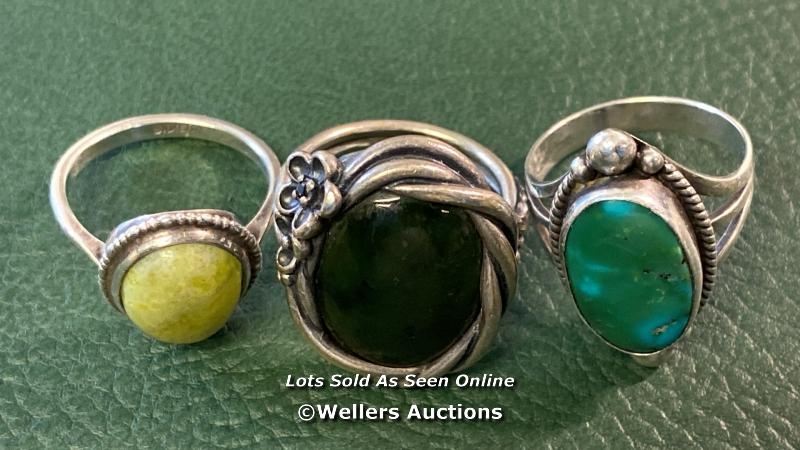 BAG OF SILVER RINGS WITH STONE X3