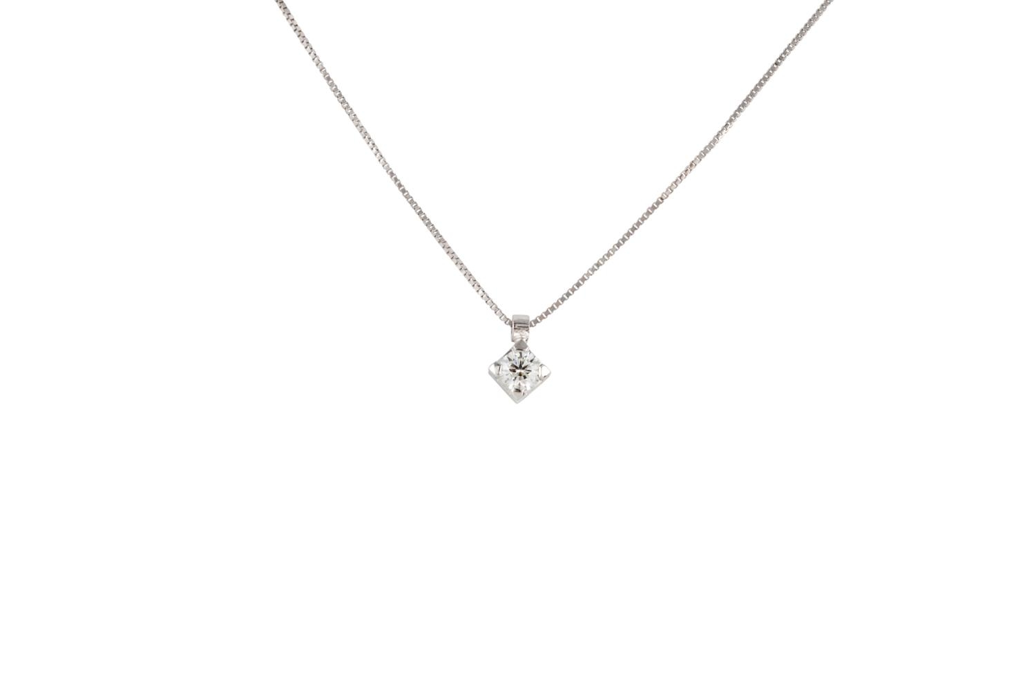 A DIAMOND SOLITAIRE PENDANT, the brilliant cut diamond mounted in 18ct white gold. Estimated; weight of diamond; 0.20 ct