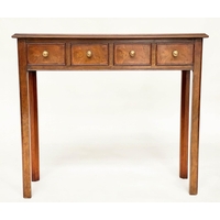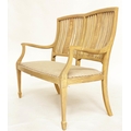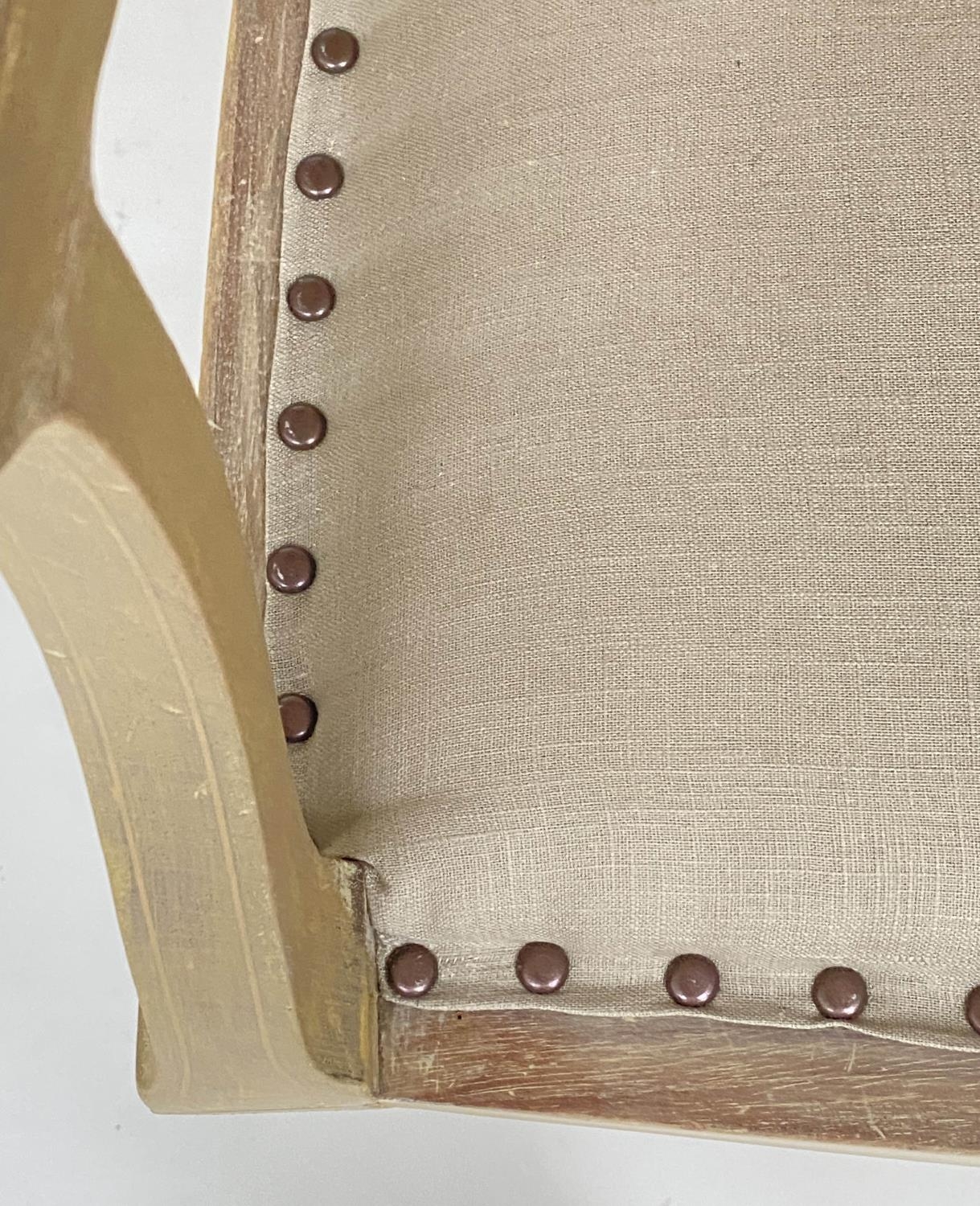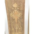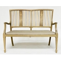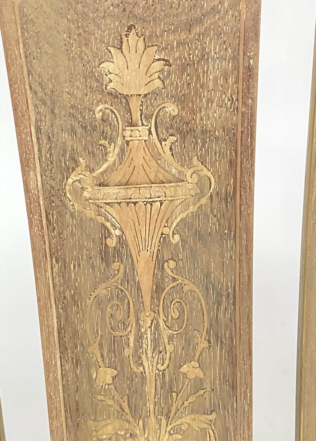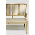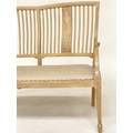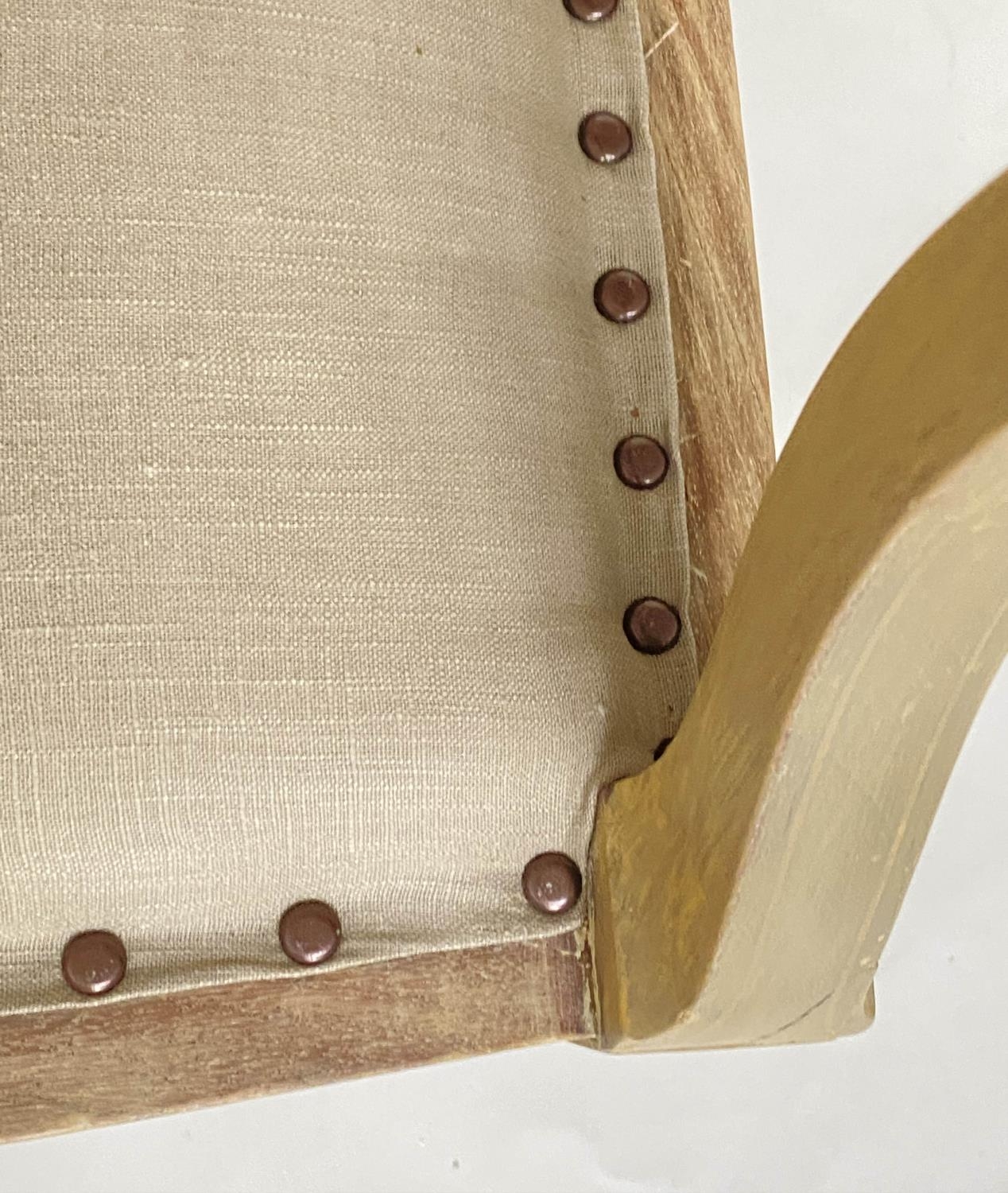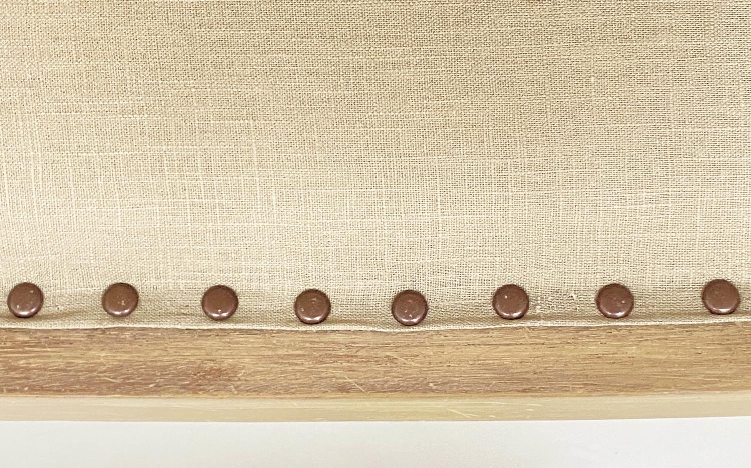 HALL SEAT, Edwardian mahogany and satinwood inlay with rail and marquetry splat back, and studded linen upholstered seat, 108cm W.
