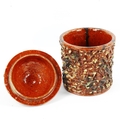 Several small glaze chips and small area of restoration to rim of inner lid