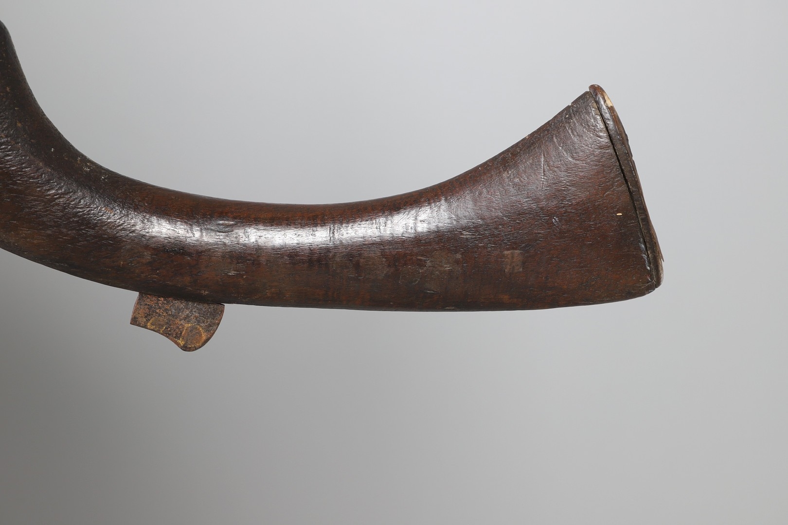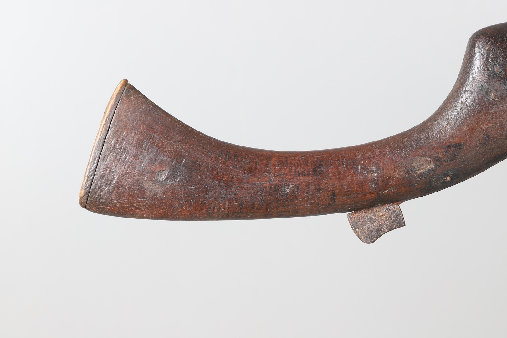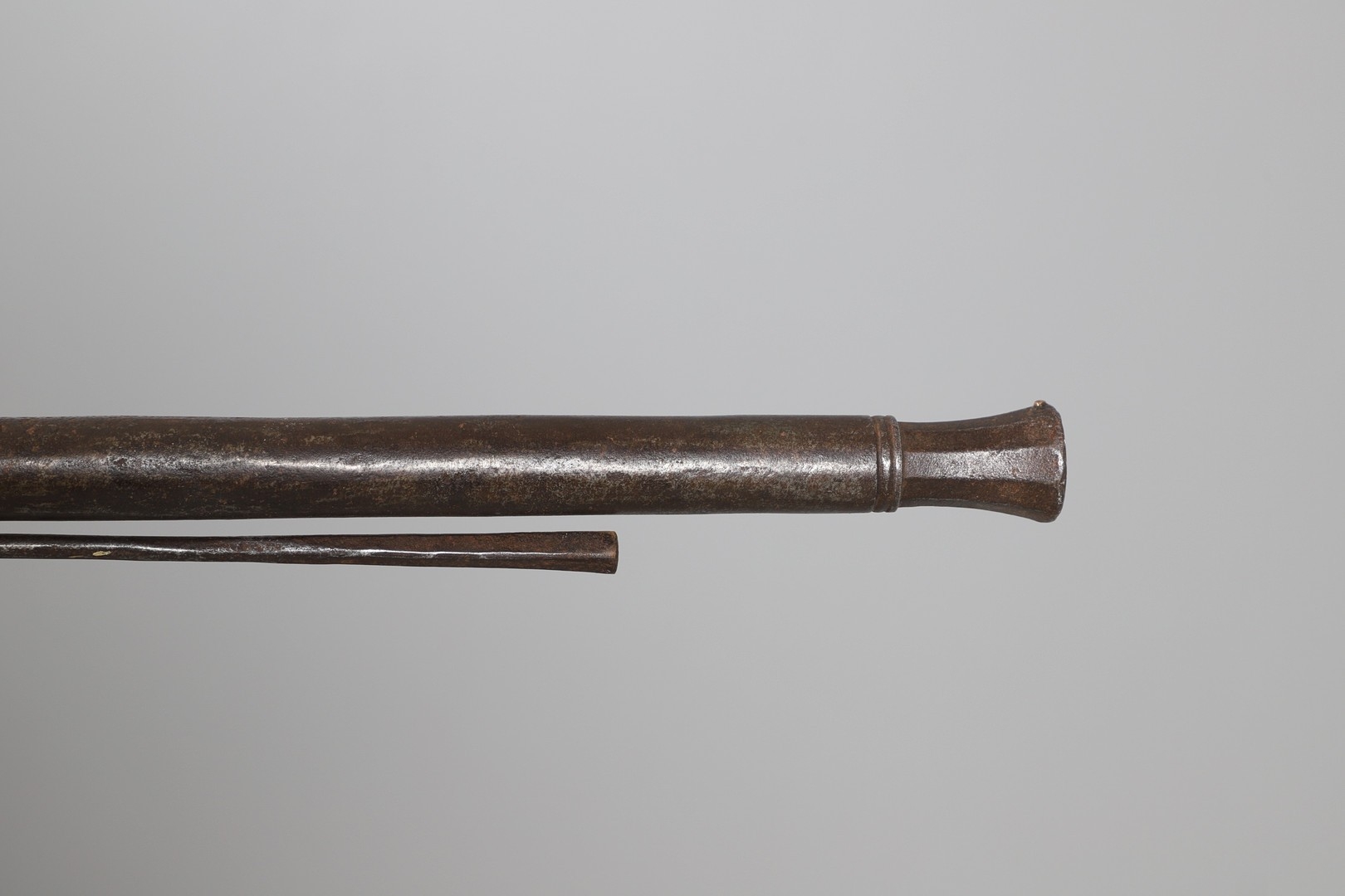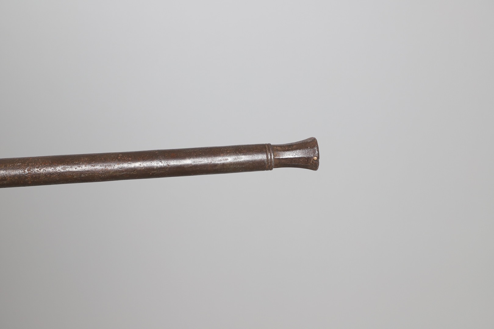AN AFGHANISTAN JEZAIL MATCHLOCK LONG GUN. The 135 cm tapering barrel, slightly flared at the muzzle with a ram rod below. Fitted with a matchlock action and crooked stock and twin sling mounting points. 175 cm. With an unusual tool fitted beneath one of the metal 'capucine' mounting bands, perhaps a touch-hole prick and a match snuff or loading gauge. "What would seem to be a primitive weapon had a greater and more accurate range than the musket used by the British.".
