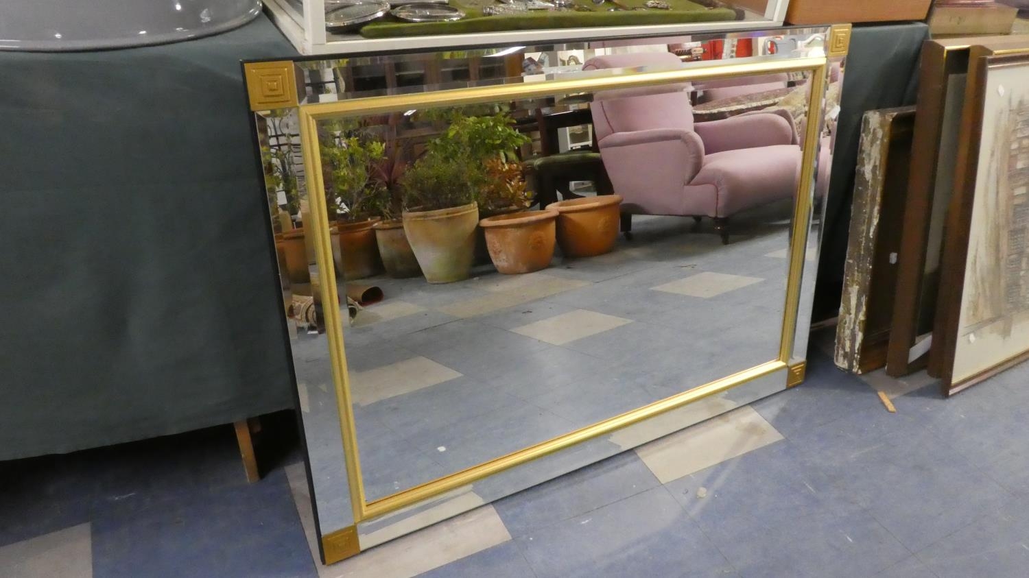 A Modern Rectangular Wall Mirror with Mirrored Frame, 105 x 74cms