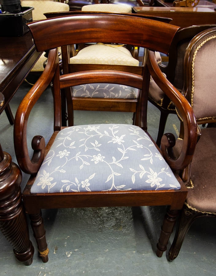 SET OF 10 MAHOGANY DINING CHAIRS (8 & 2 CARVERS) WITH SHAPED BACK ON TURNED LEGS