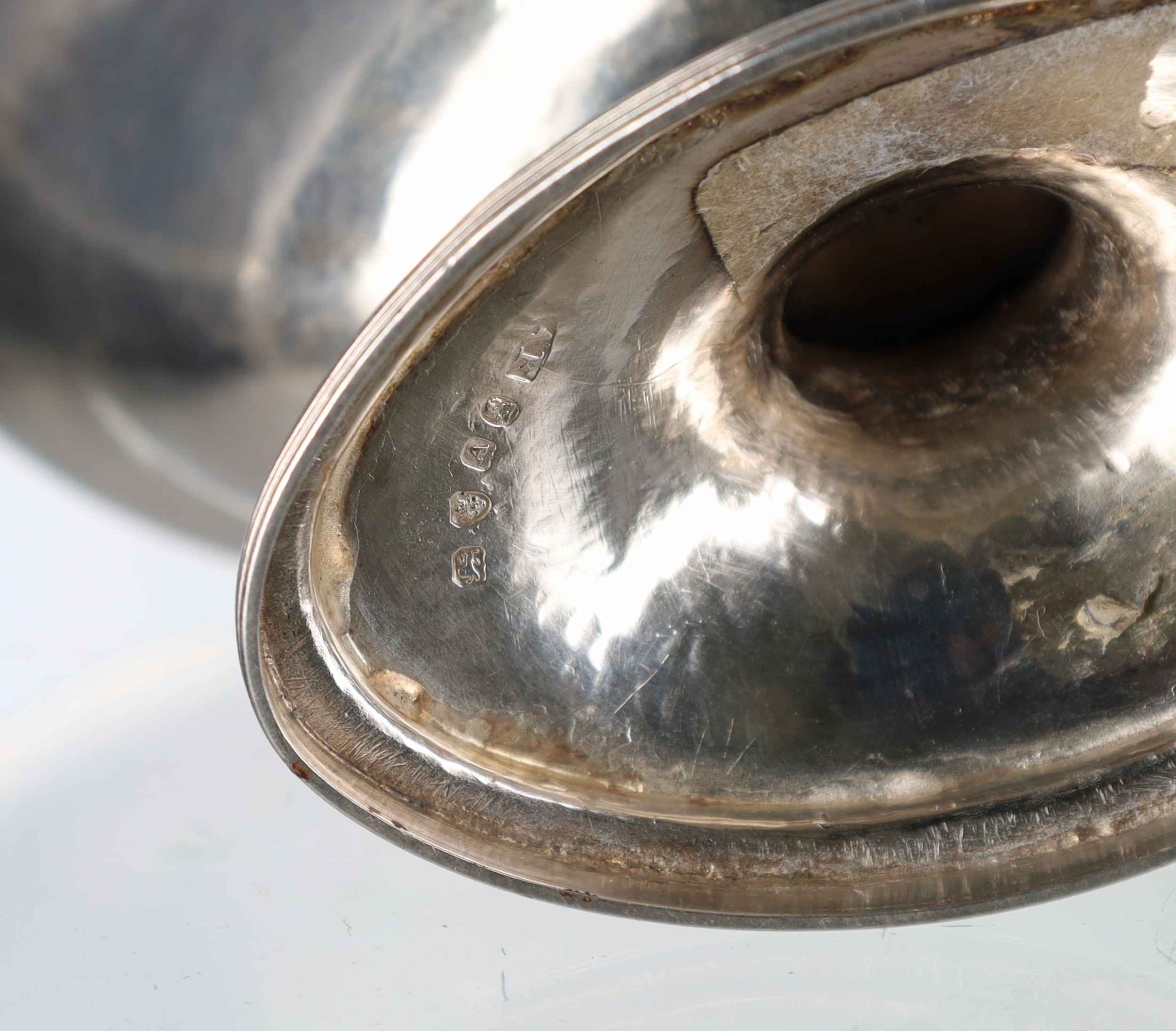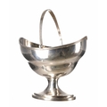 George III silver boat shaped bon bon basket, having a swing handle over, raised on a tall support, maker AF possibly Alexander Field, London 1796, 7.5" high, 6.7oz t