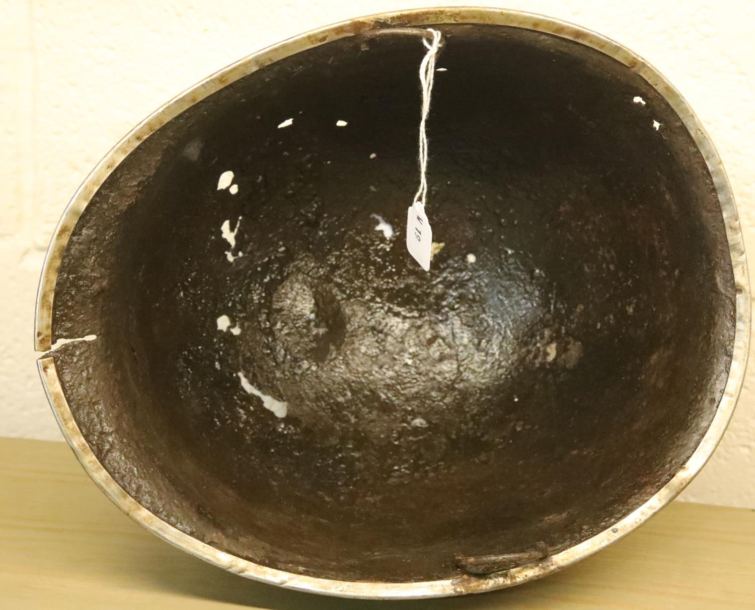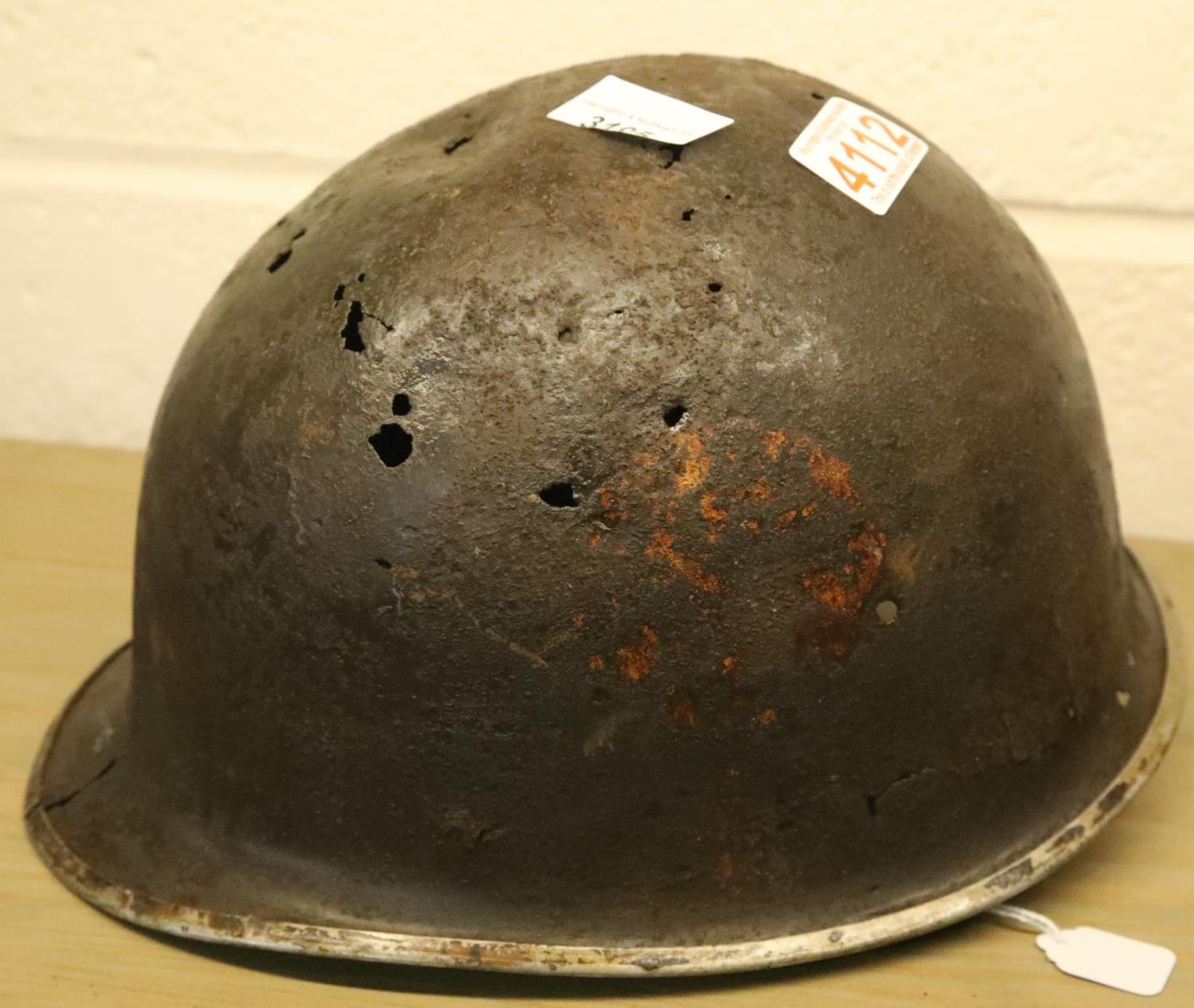 American WWII Normandy relic US M2 Paratroopers Helmet. D Bales, Front Seam. Remains of the 101st Artillery insignia can be seen. P&P Group 2 (£18+VAT for the first lot and £3+VAT for subsequent lots)