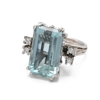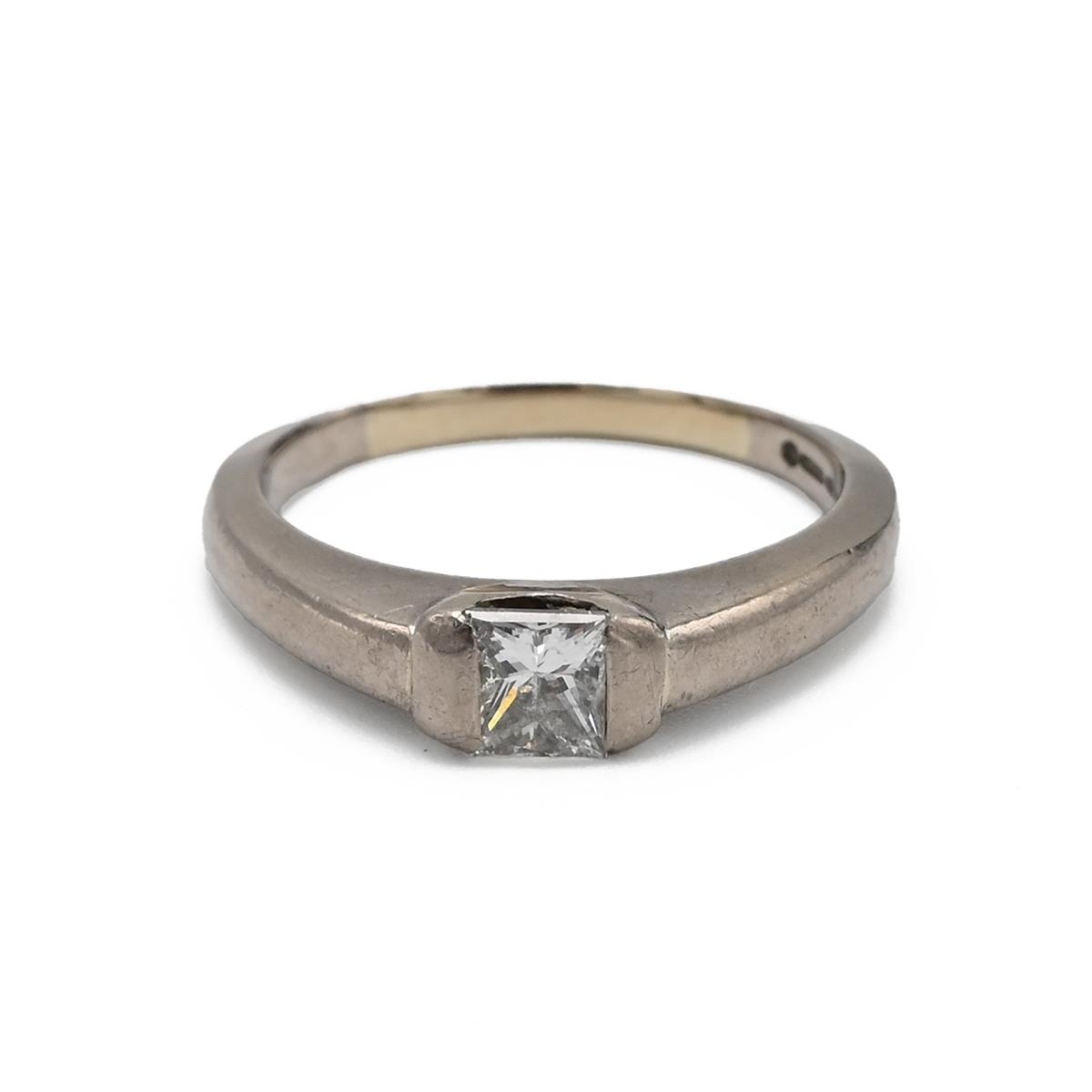 An 18ct white gold and princess cut single stone diamond ring, the diamond weighing approximately 0.40 carats, finger size J, 4.47 grams. J