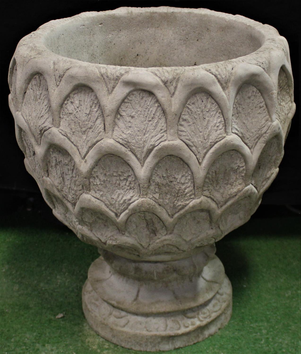 DEEP STONEWORK PINEAPPLE PATTERN PLANTER ON CIRCULAR BASE (COMES IN 2 PIECES)