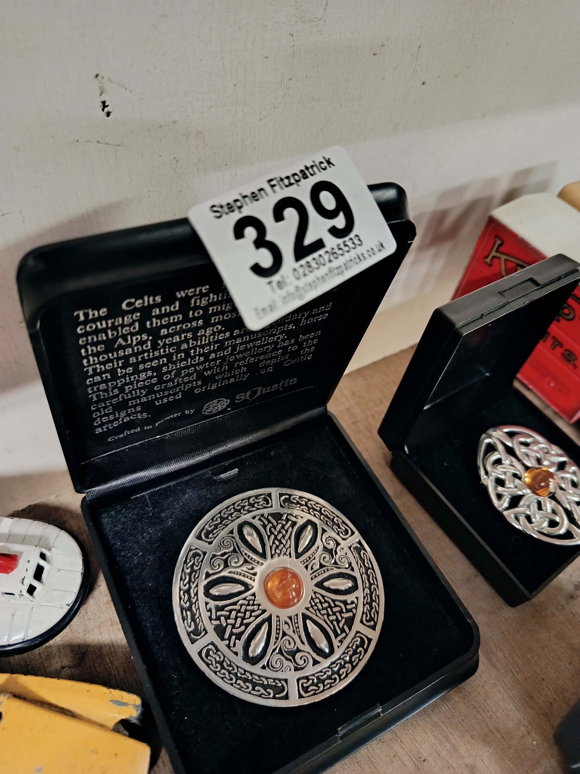 2 x Celtic Brooches with Amber Glass