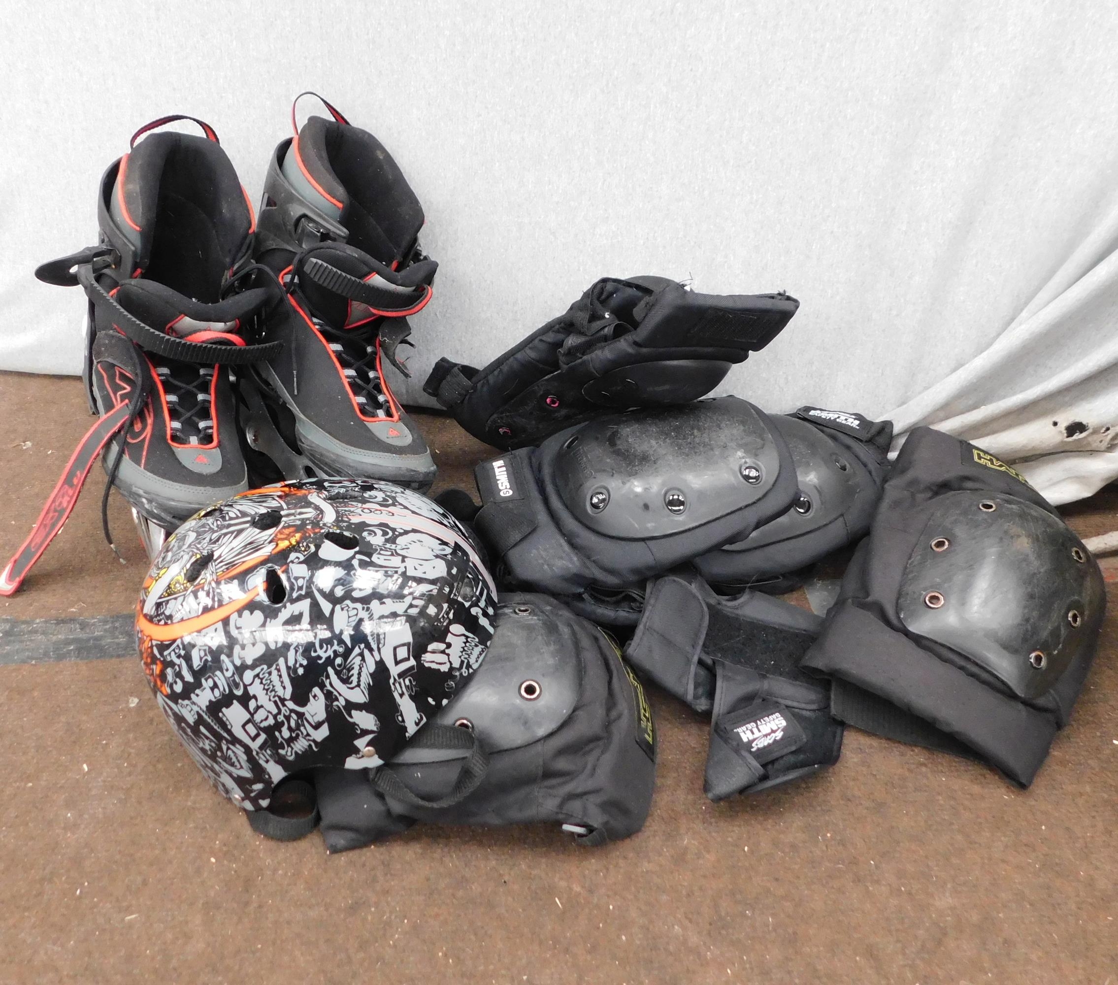 Pair of inline roller skates (UK 11.5) + pads etc
