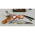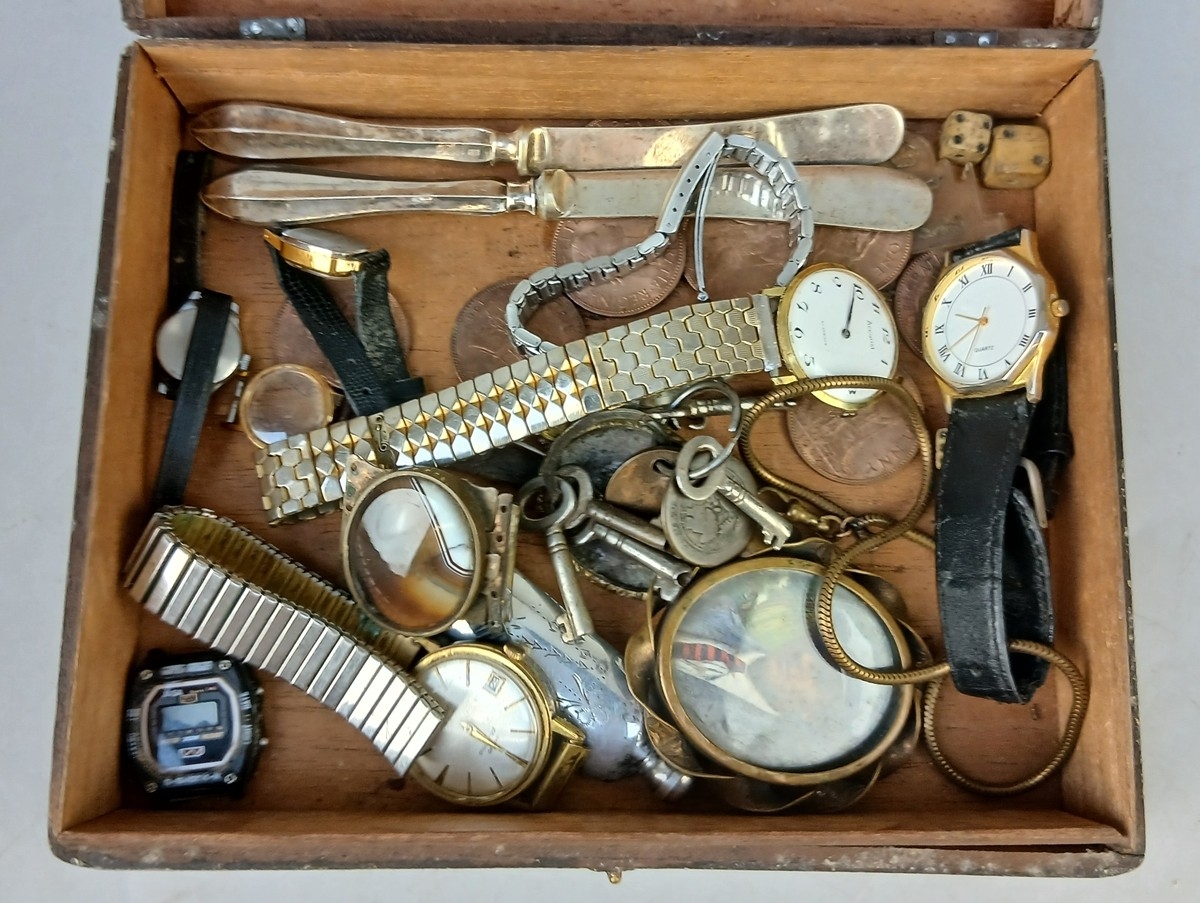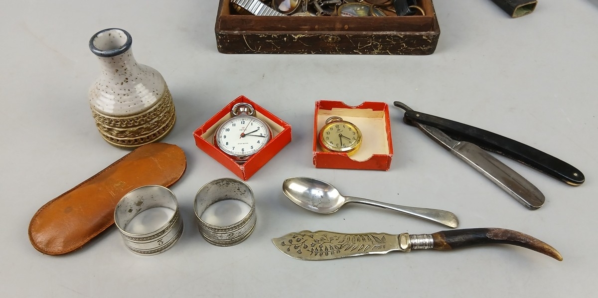 Collectables to include pocket watch, vintage keys, perfume bottle, etc.