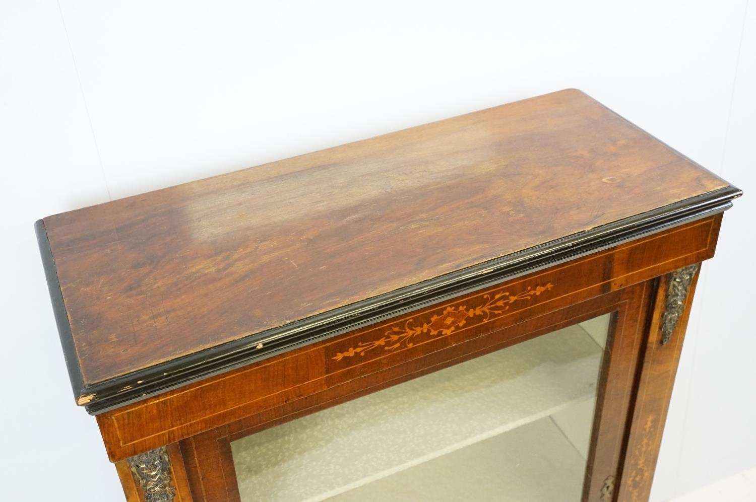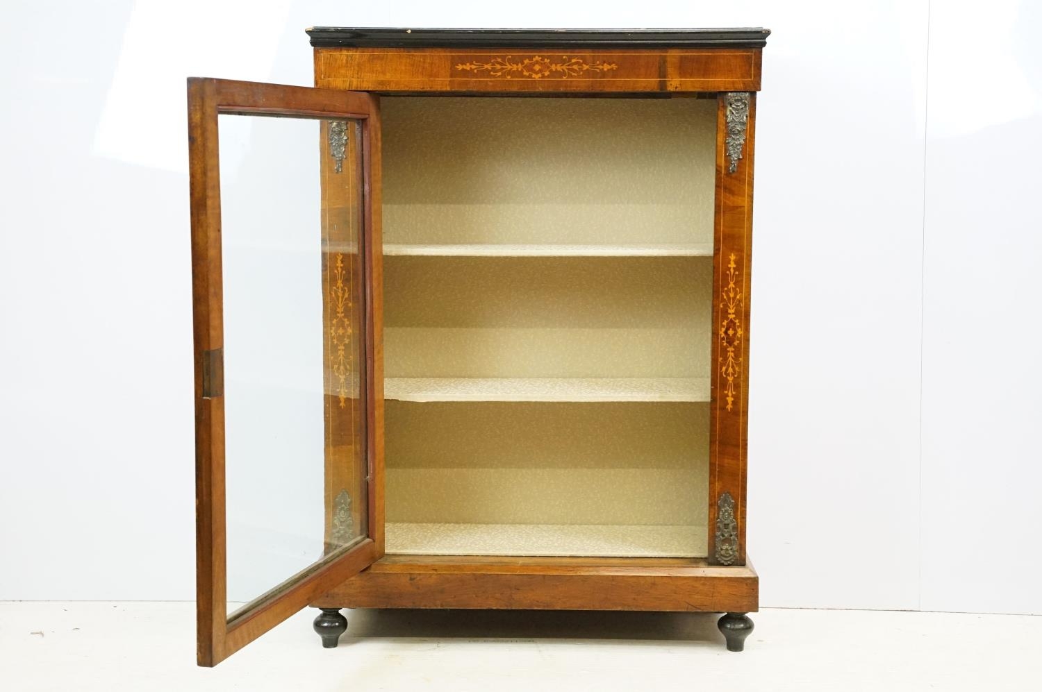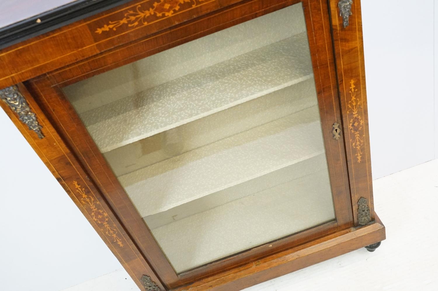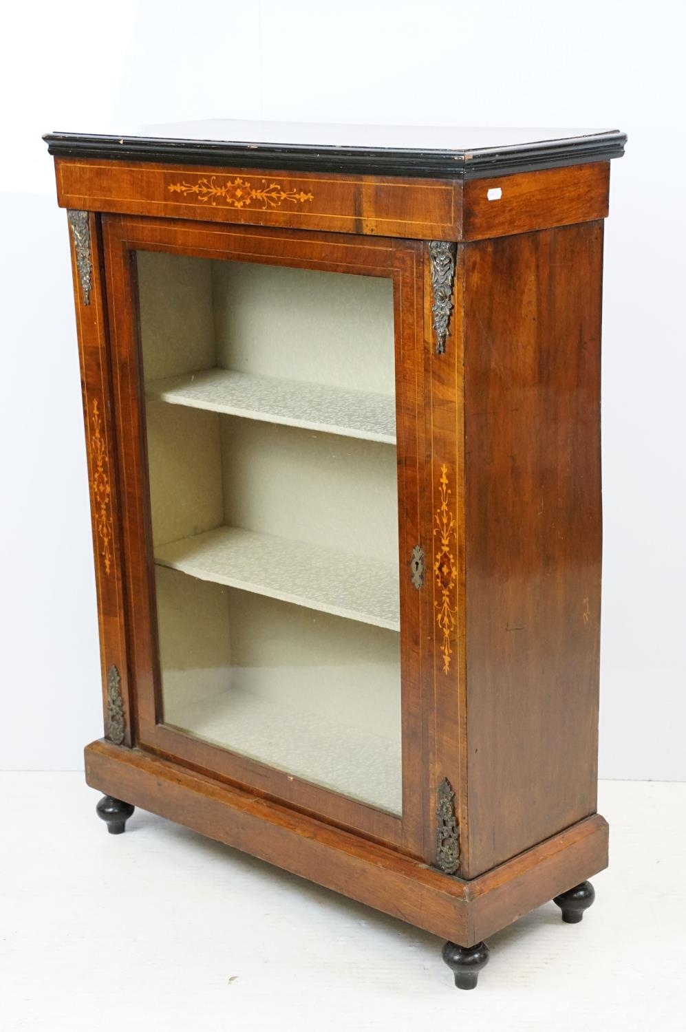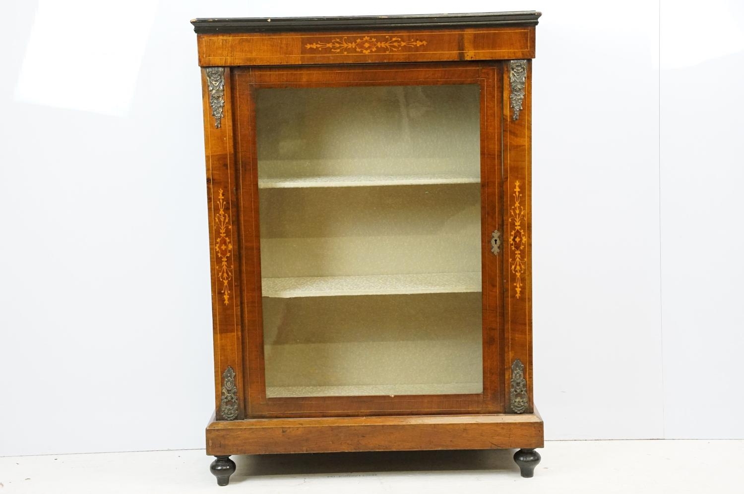 Edwardian mahogany inlaid display cabinet with gilt metal mounts, glazed door and shelves within, 106cm high x 76cm wide x 32cm deep
