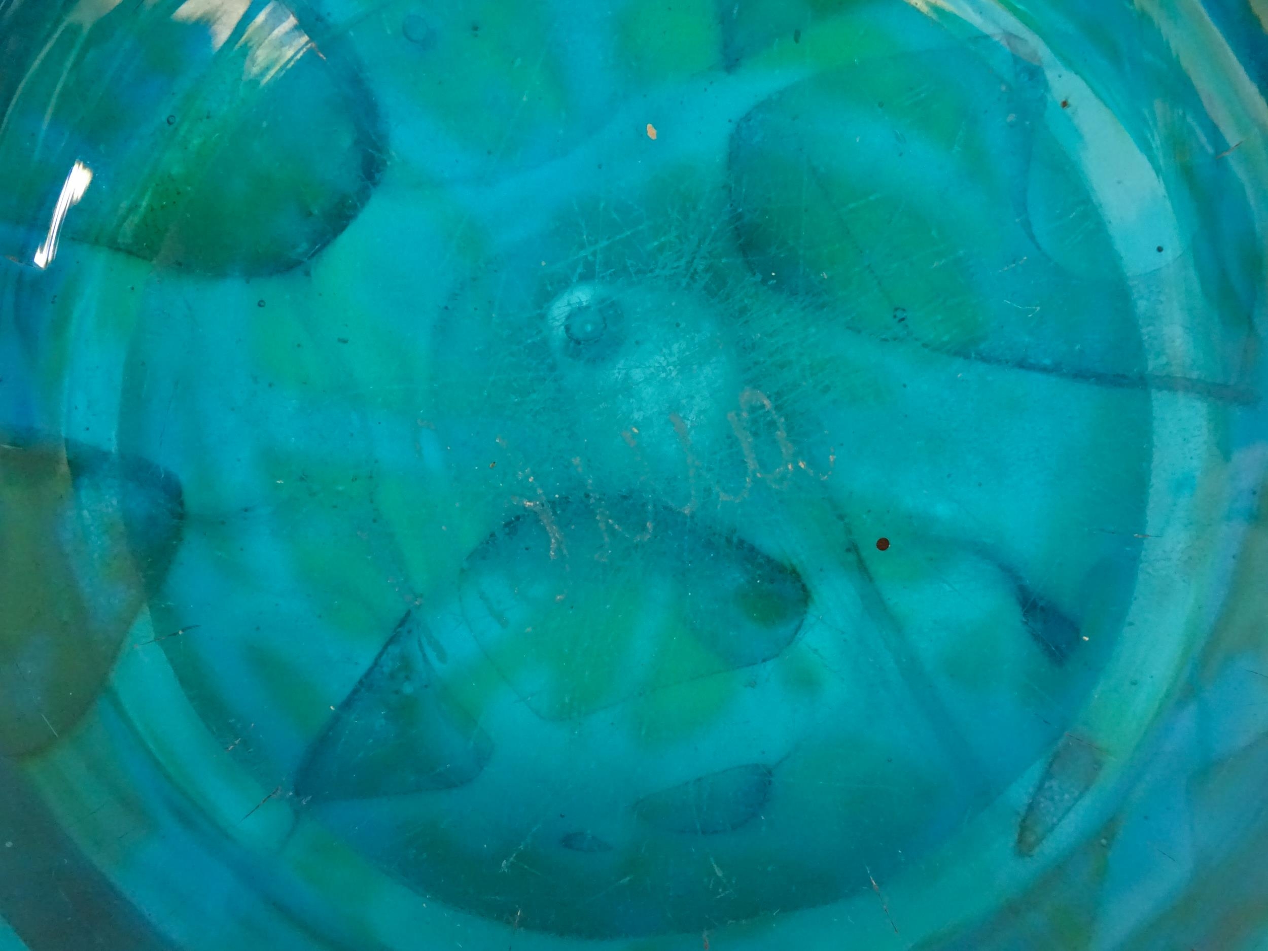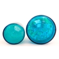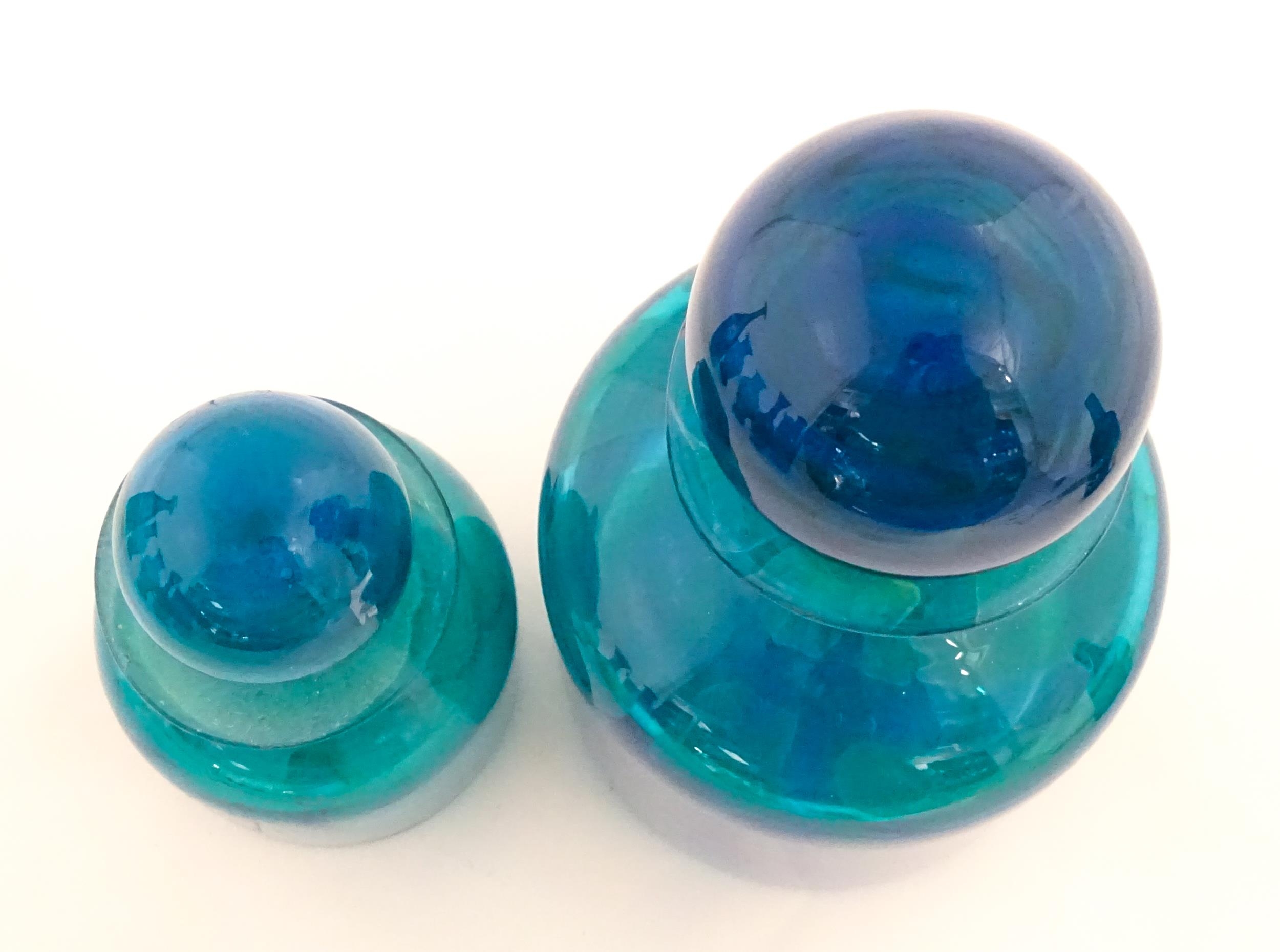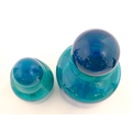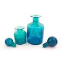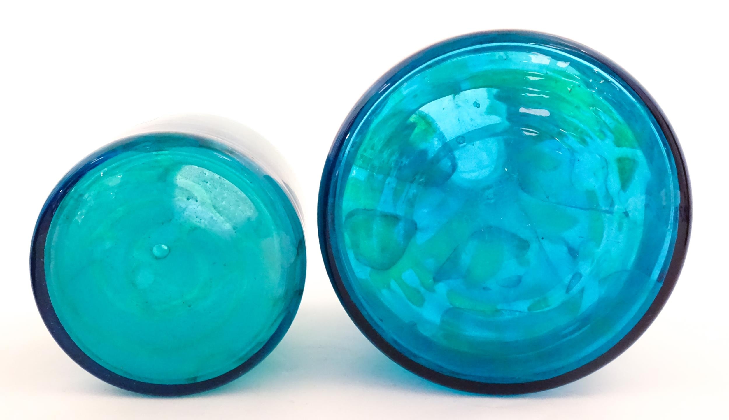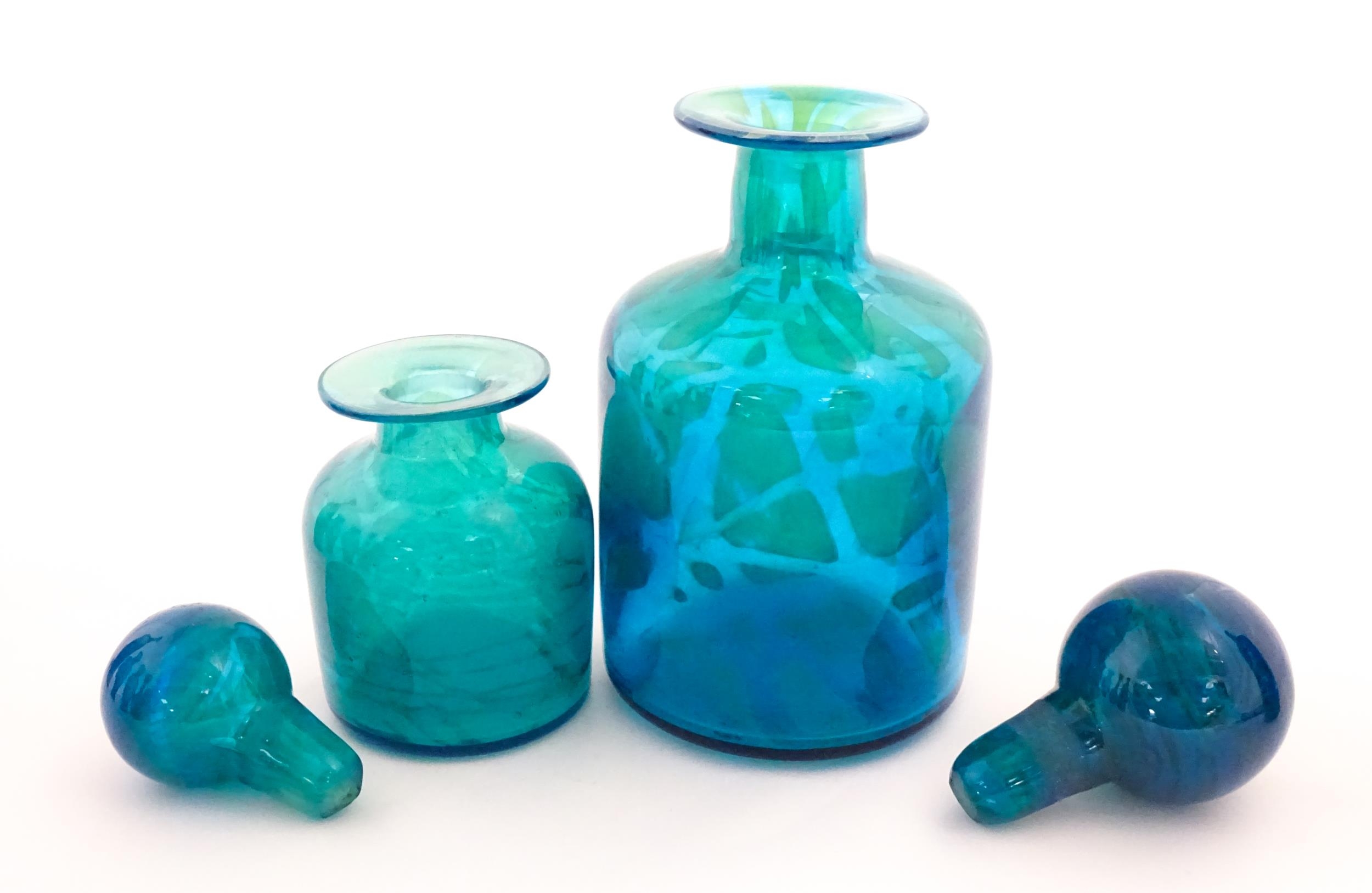 A large Mdina blue glass decanter. Together with a smaller example. Both signed Mdina under. Largest approx. 12" high (2)