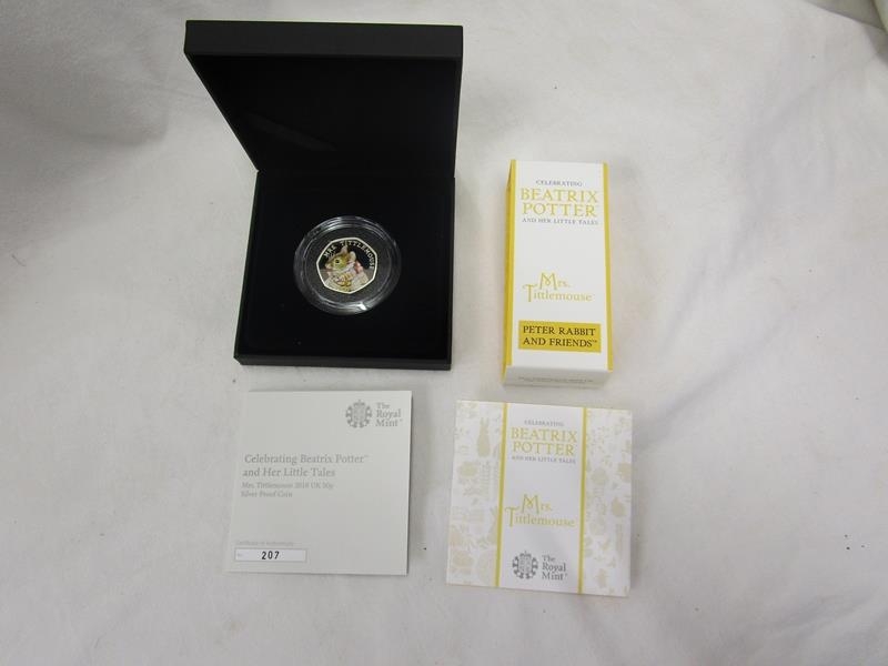 Royal Mint Mrs Tittlemouse silver proof 50 pence coin - Beatrix Potter 2018 - Black box edition