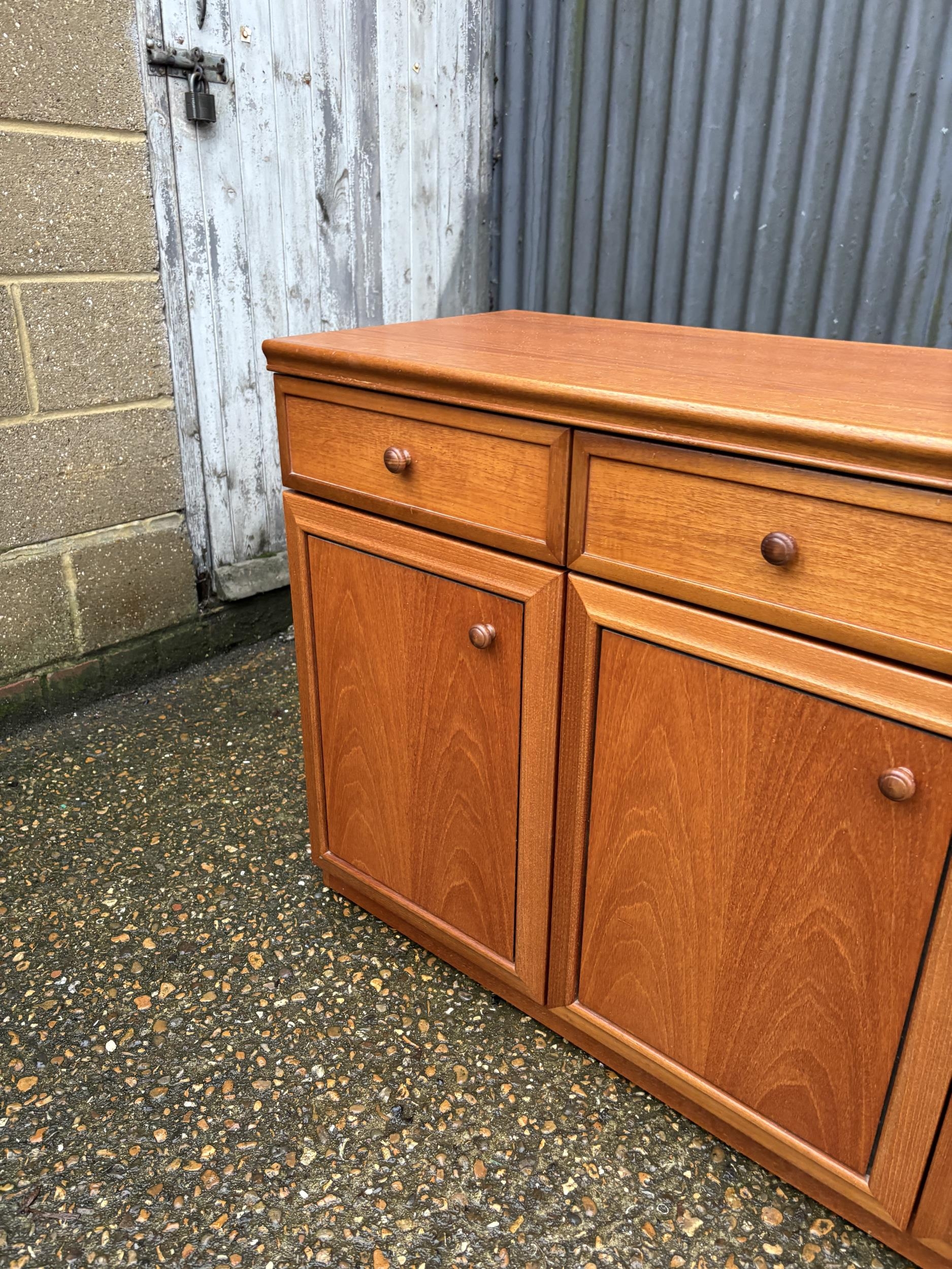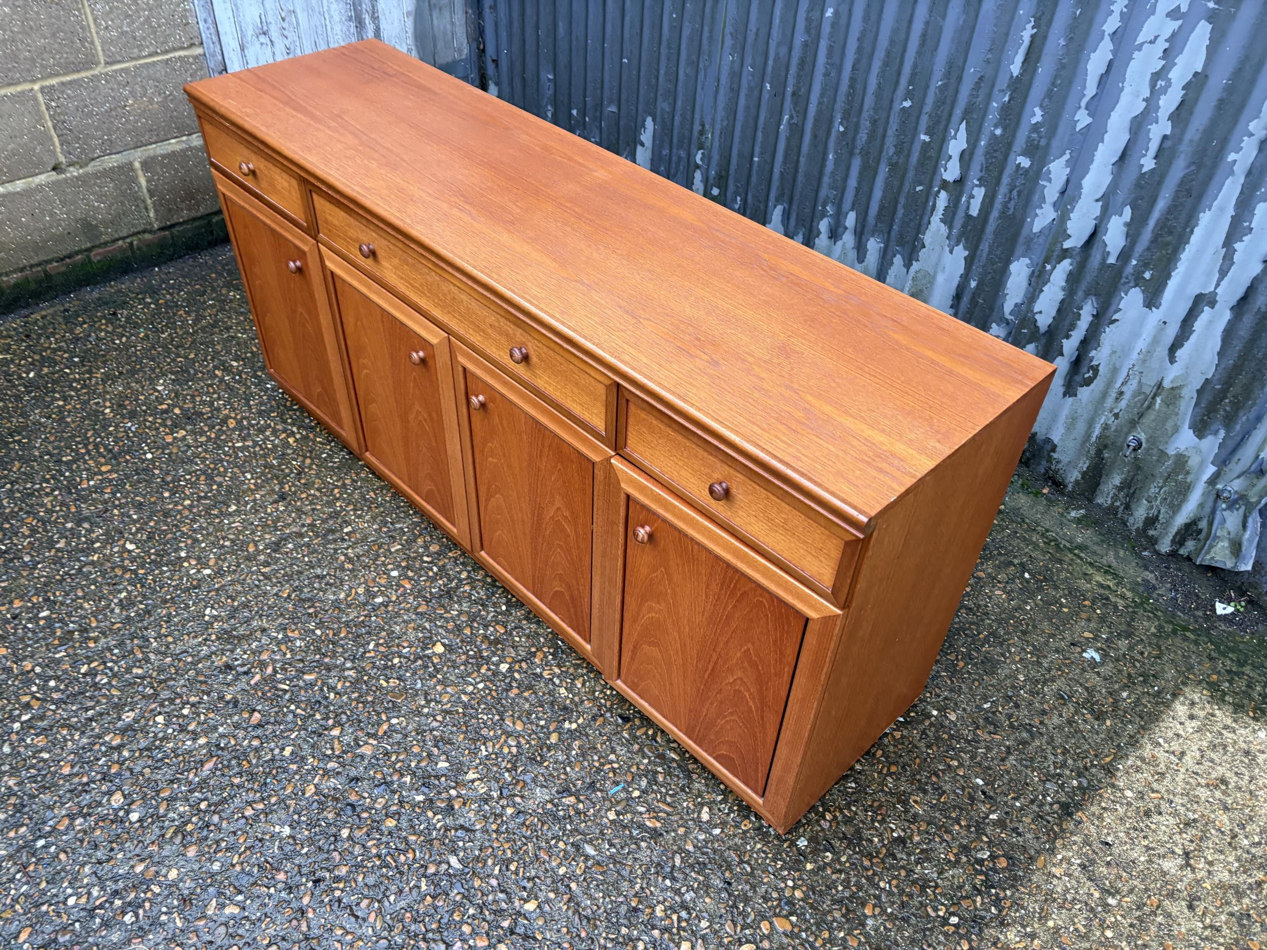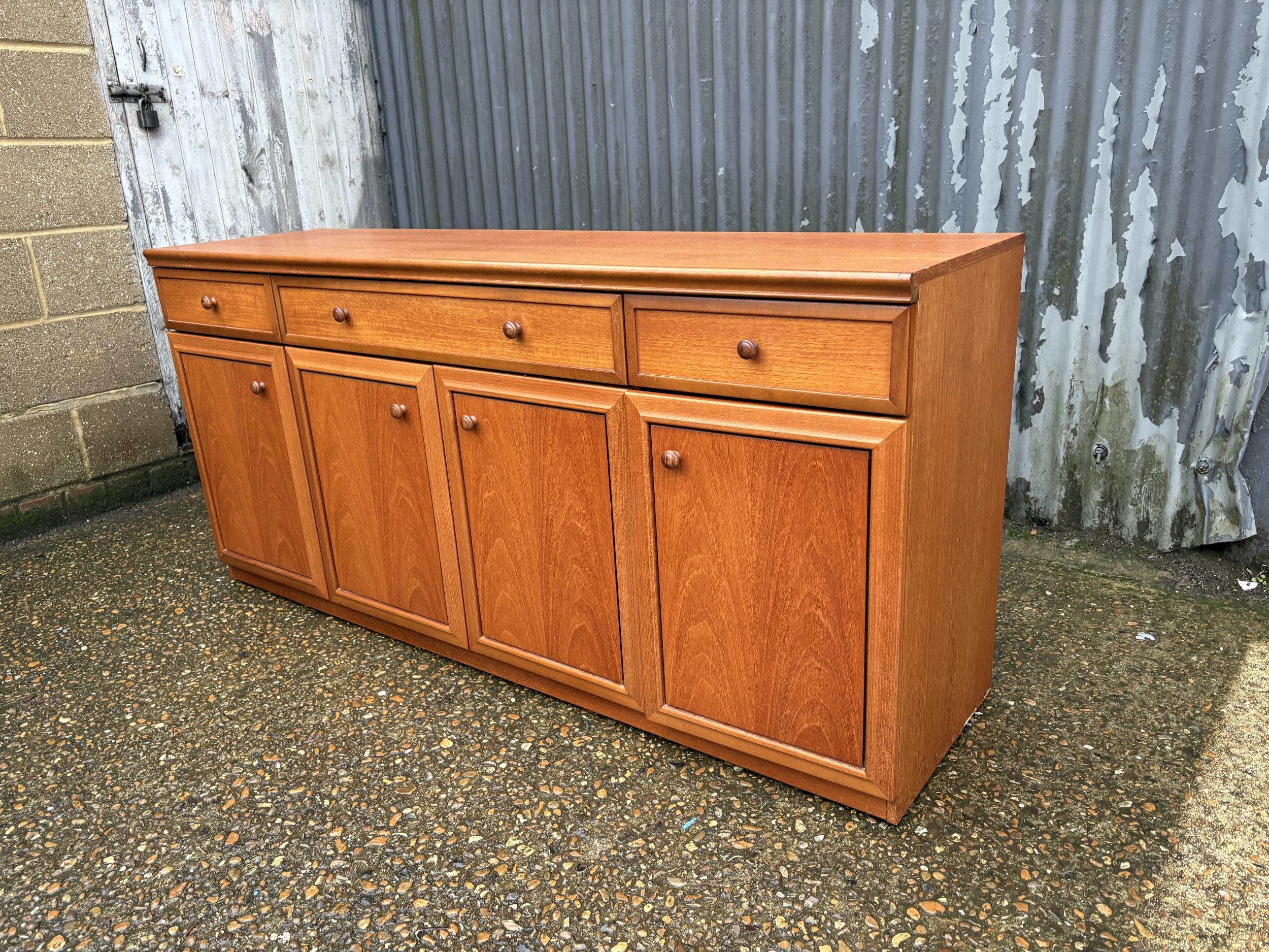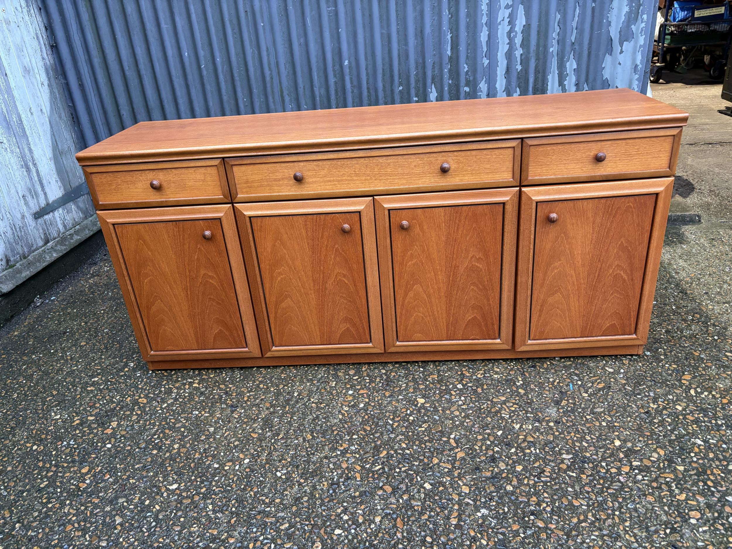 A mid century teak three drawer sideboard 165x45x77