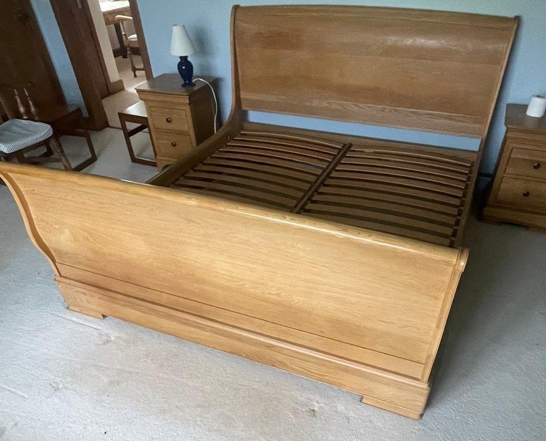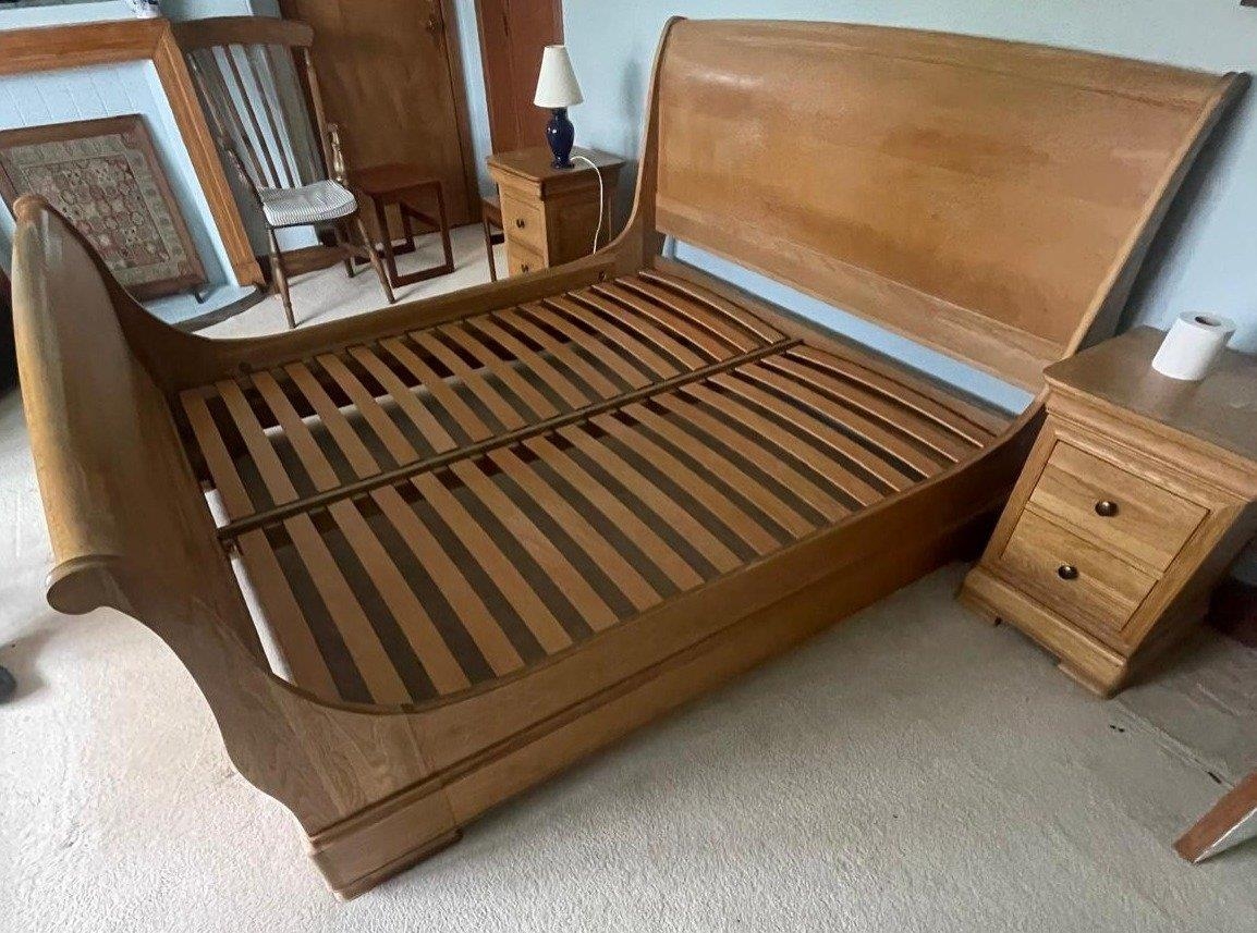 A WILLIS & GAMBIER pair of solid LIGHT OAK SUPER KINGSIZE ( 180cm width x 200cm length) sleigh bed with headboard - this piece of furniture is 'absolutely top quality!' - cost new over £450 - there is matching subsequent lots matching this lot - DON'T MISS OUT!