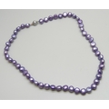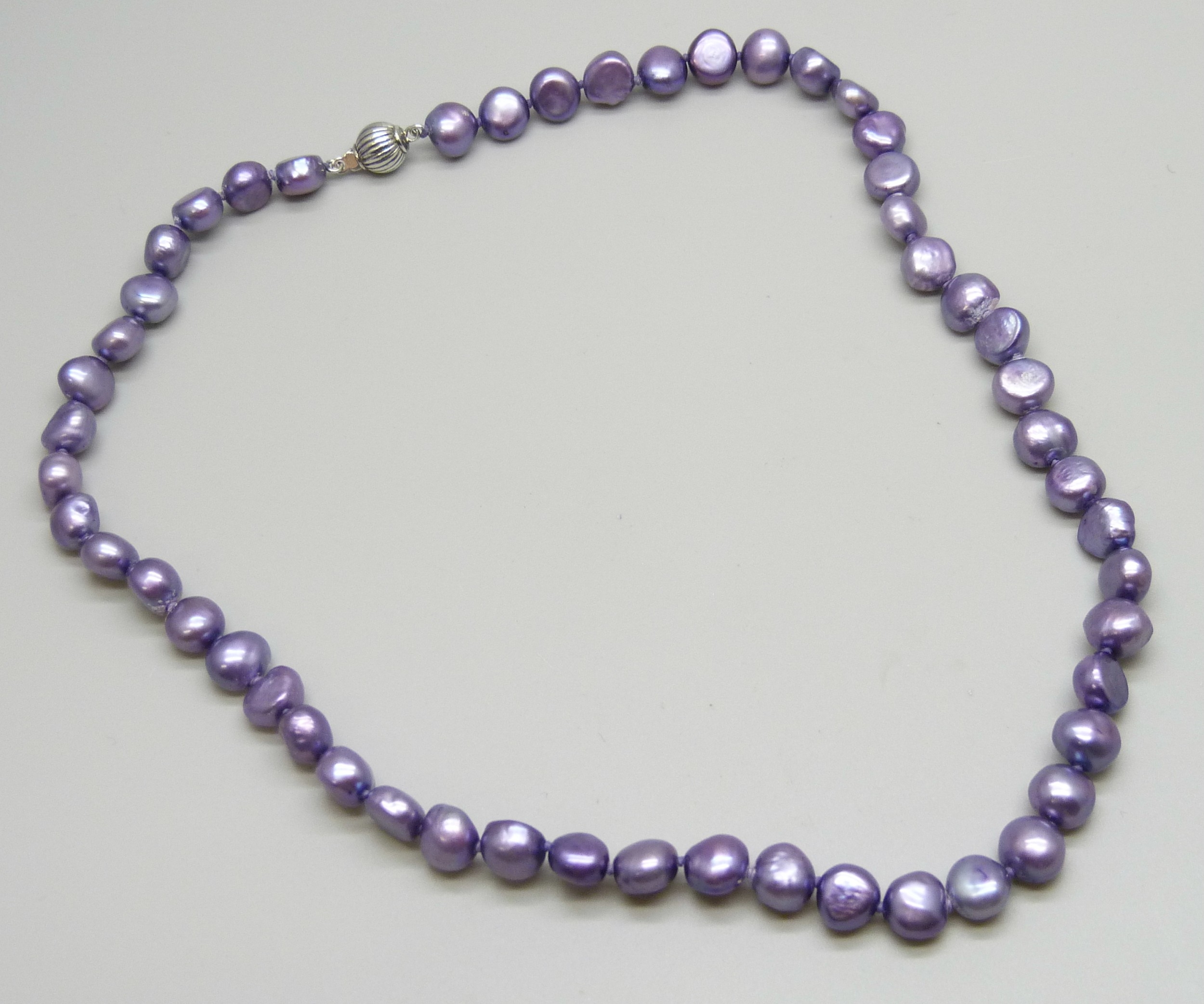A lavender purple pearl necklace with a silver clasp, 35g, 46cm