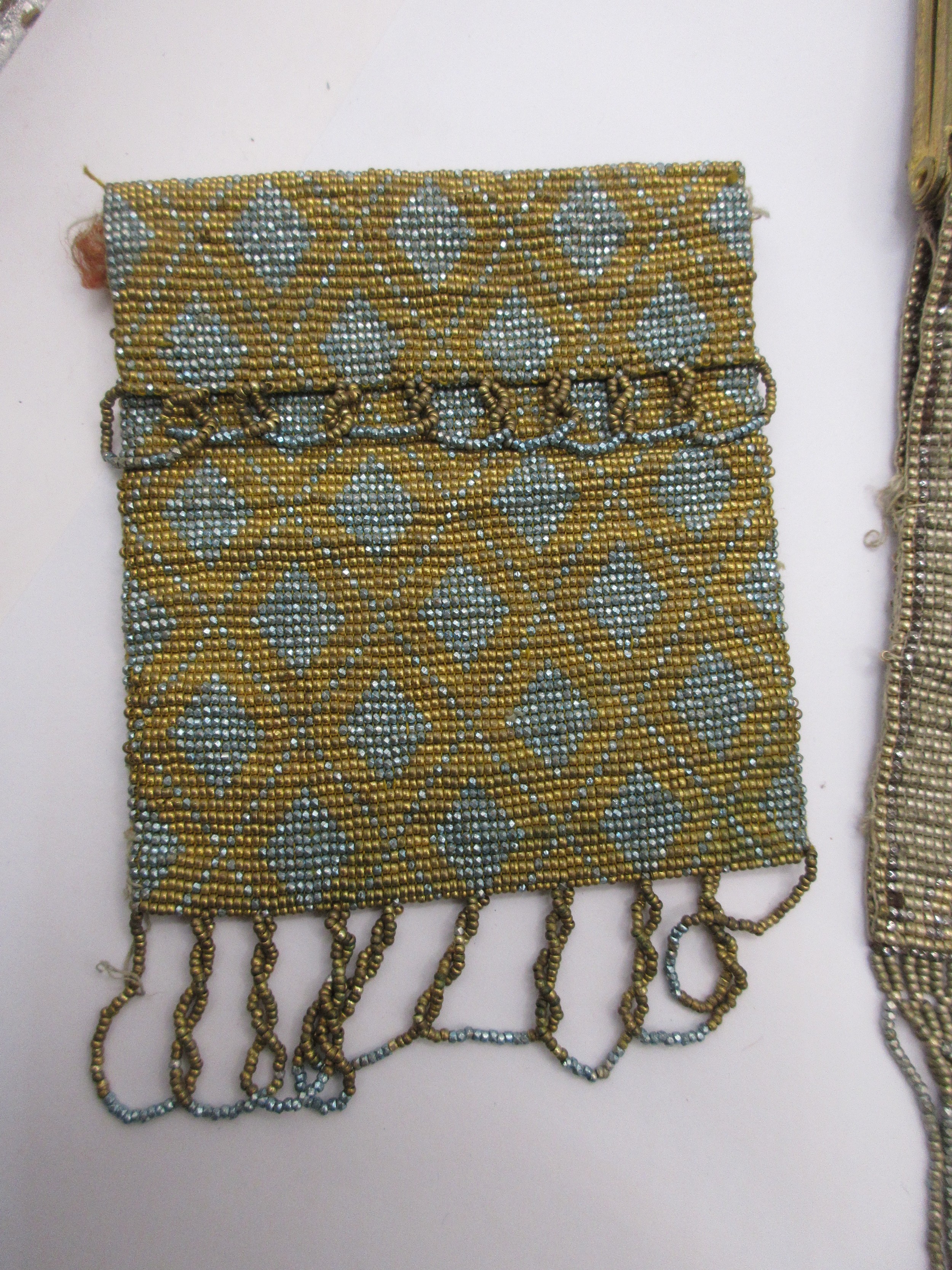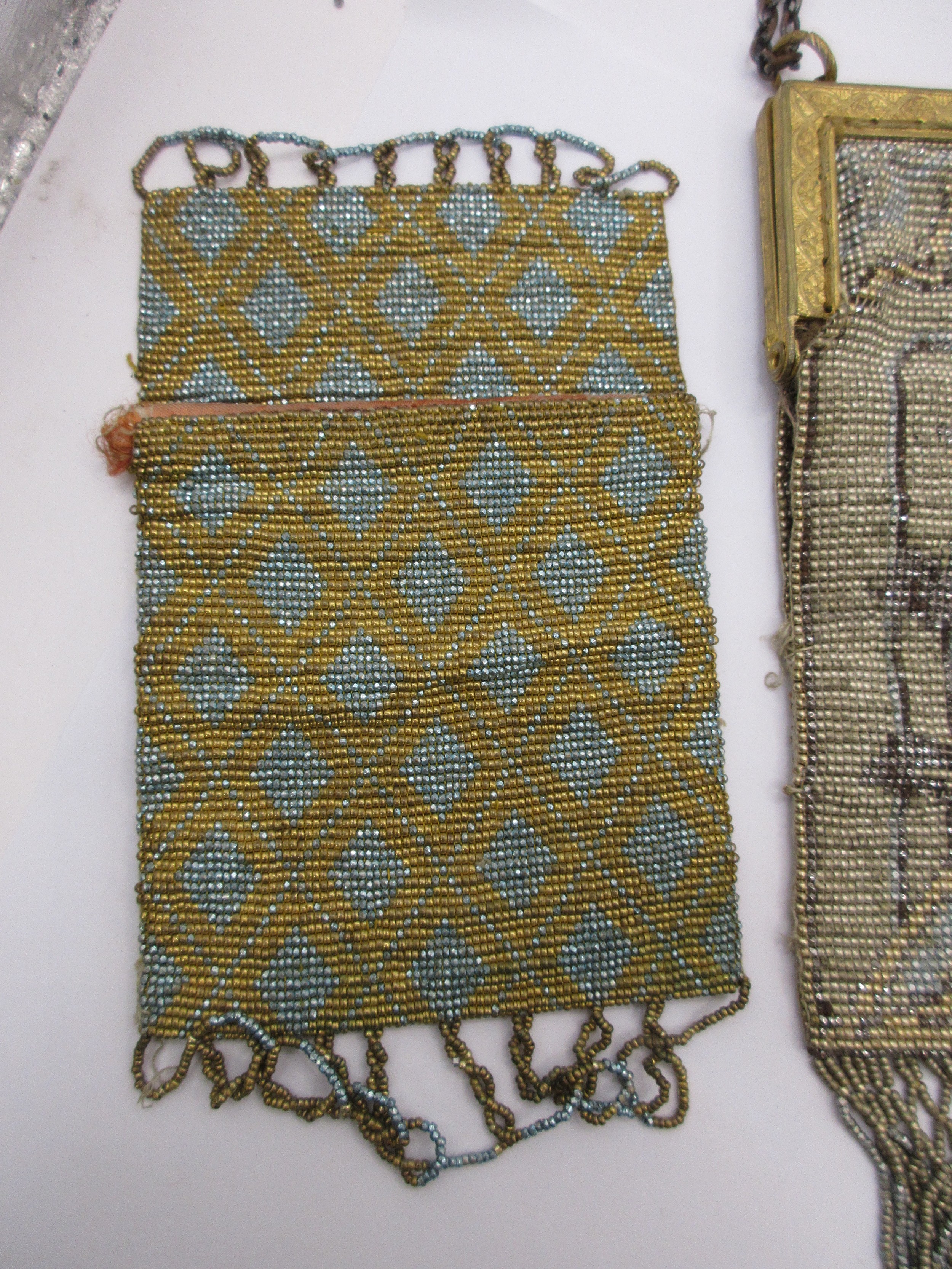 3 early 20th century coloured metallic bead evening purses of intricate design