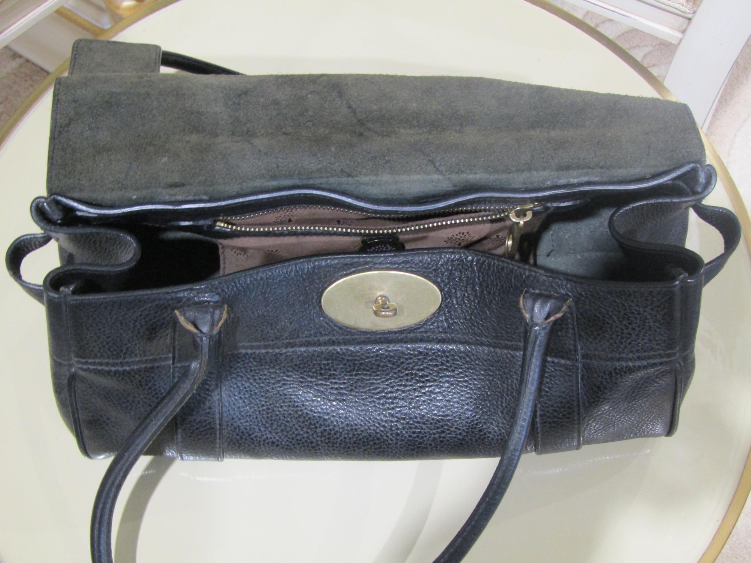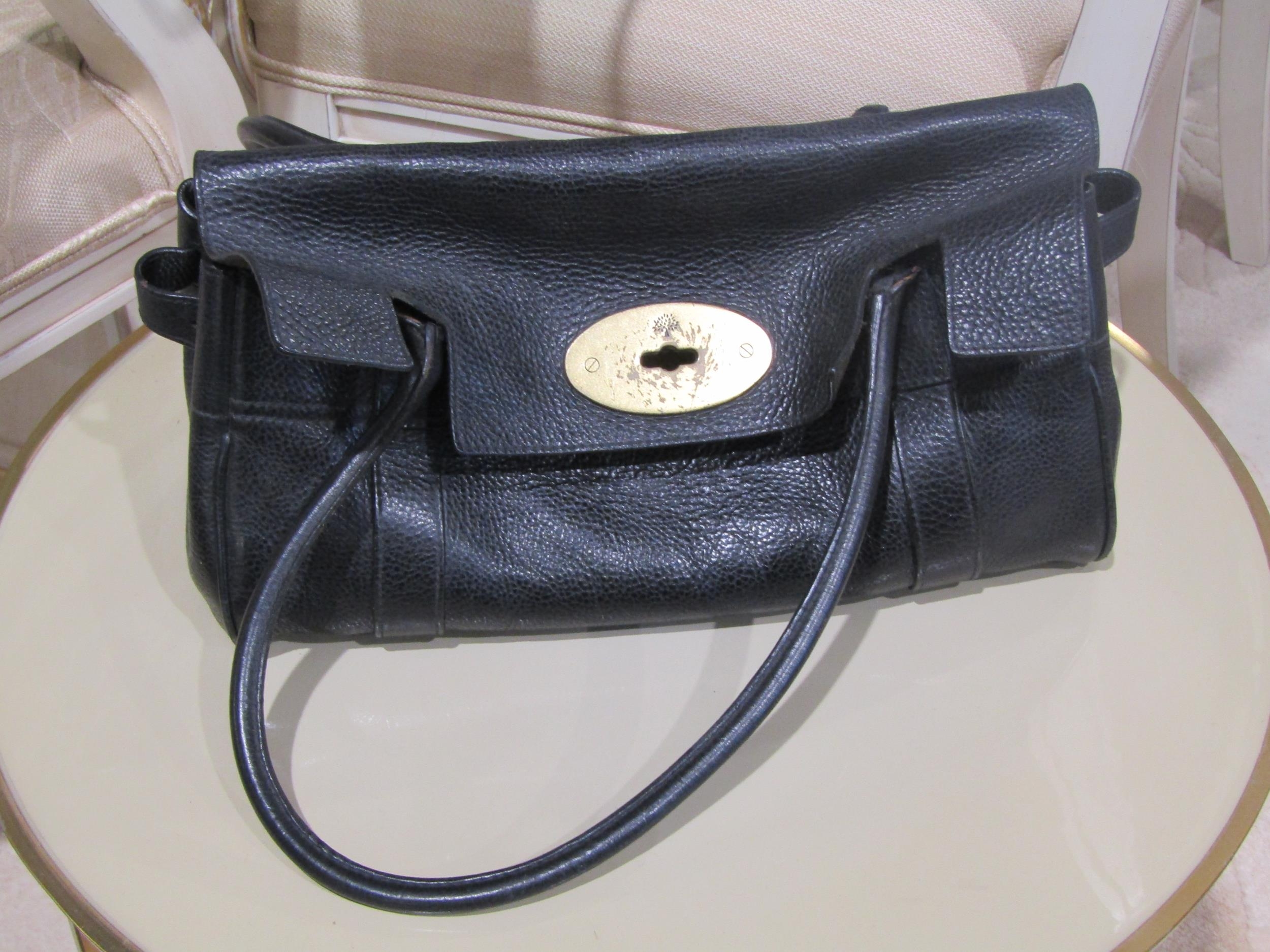 A Mulberry "Heritage Bayswater" lady's black natural leather handbag, used condition, clasp worn