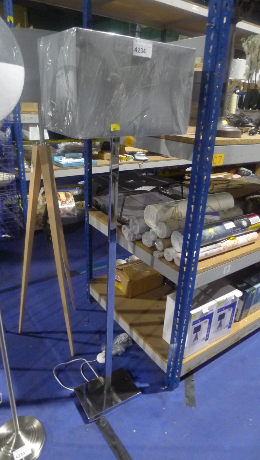 1 chrome metal floor standing lamp 240v with a grey shade, approx 150cm high including shade