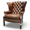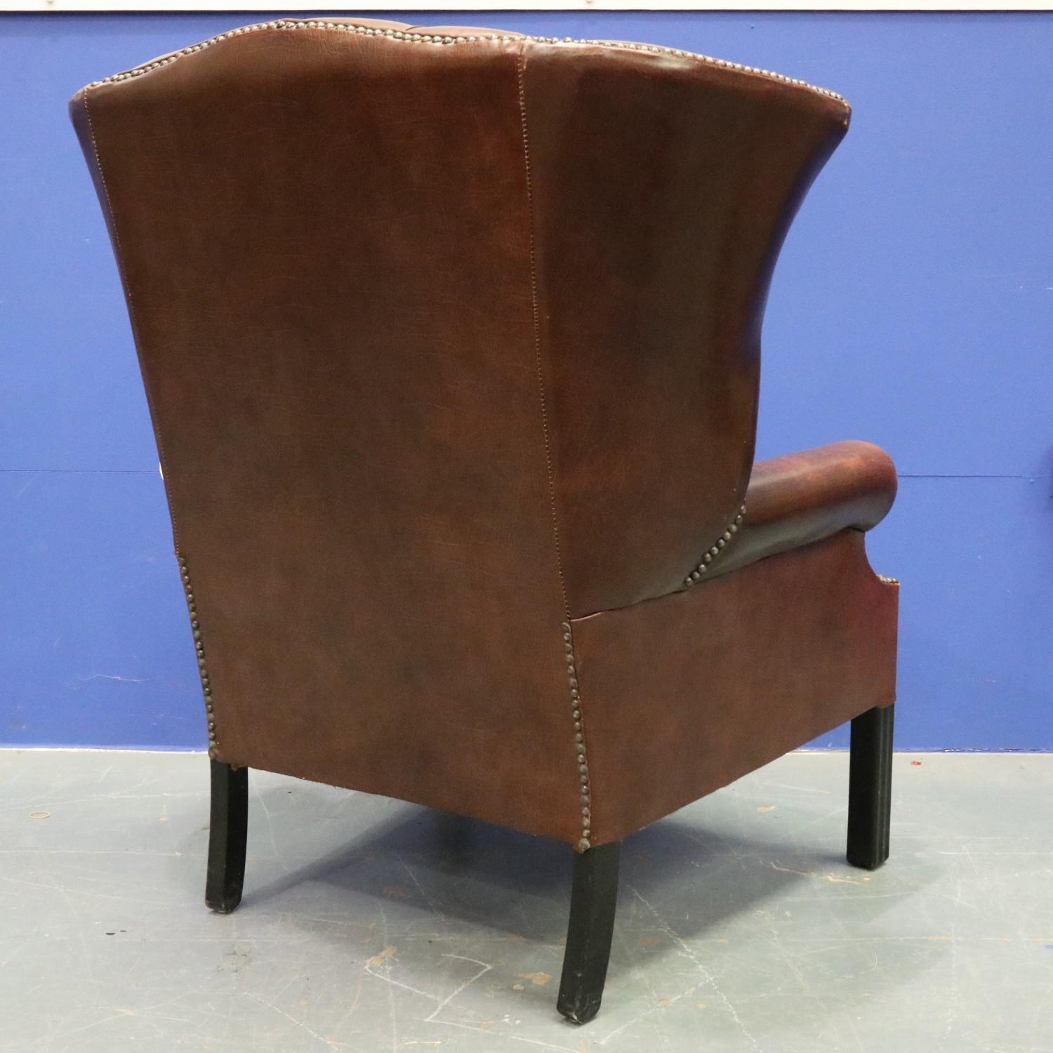 A modern Chesterfield brown leather gentleman's fireside wing-back armchair. Not available for in-house P&P