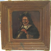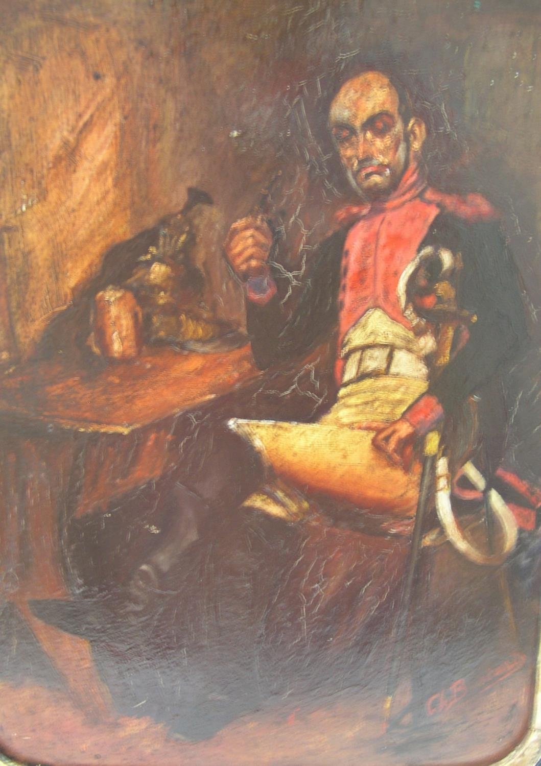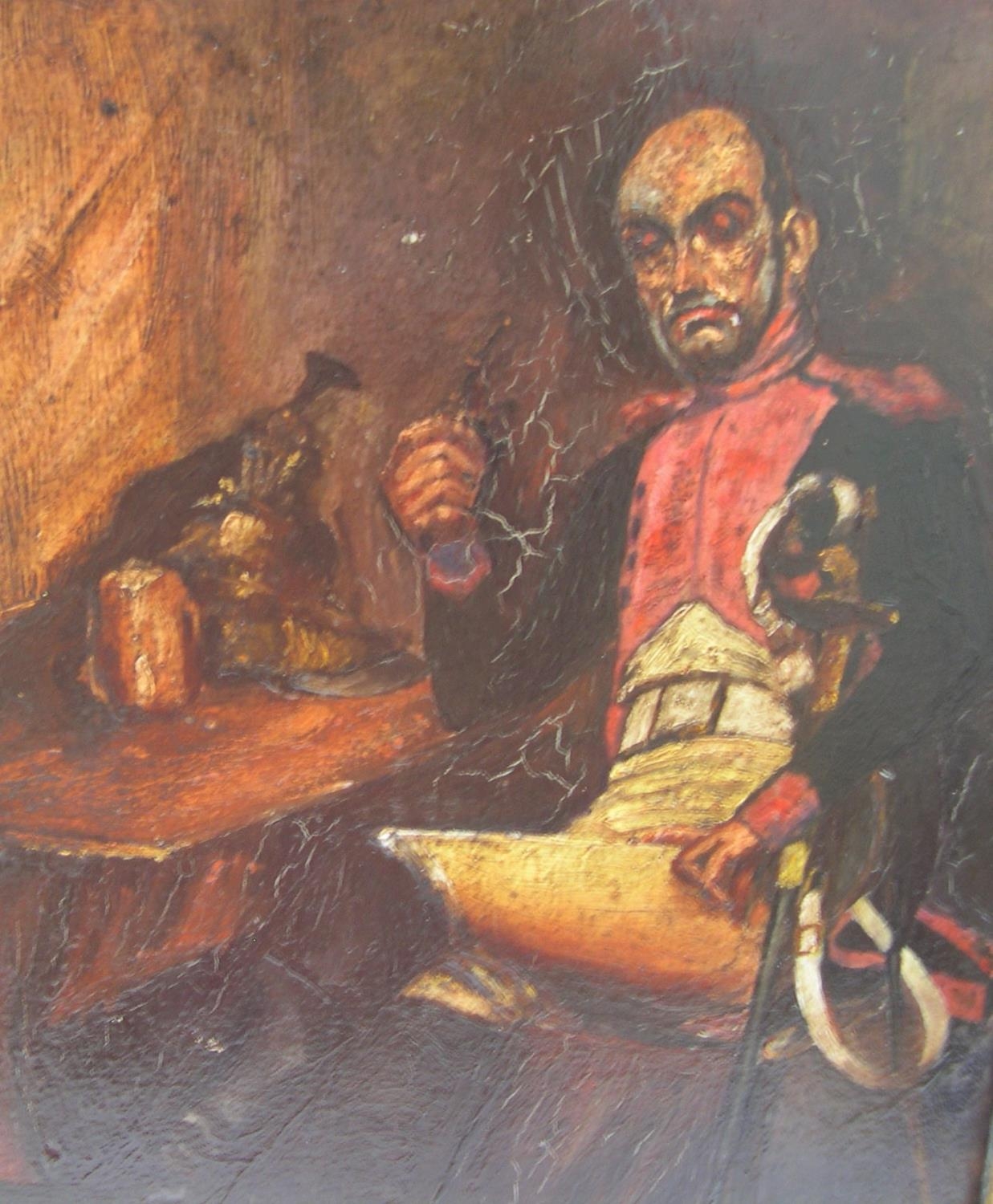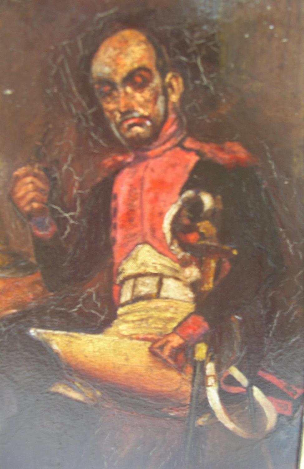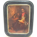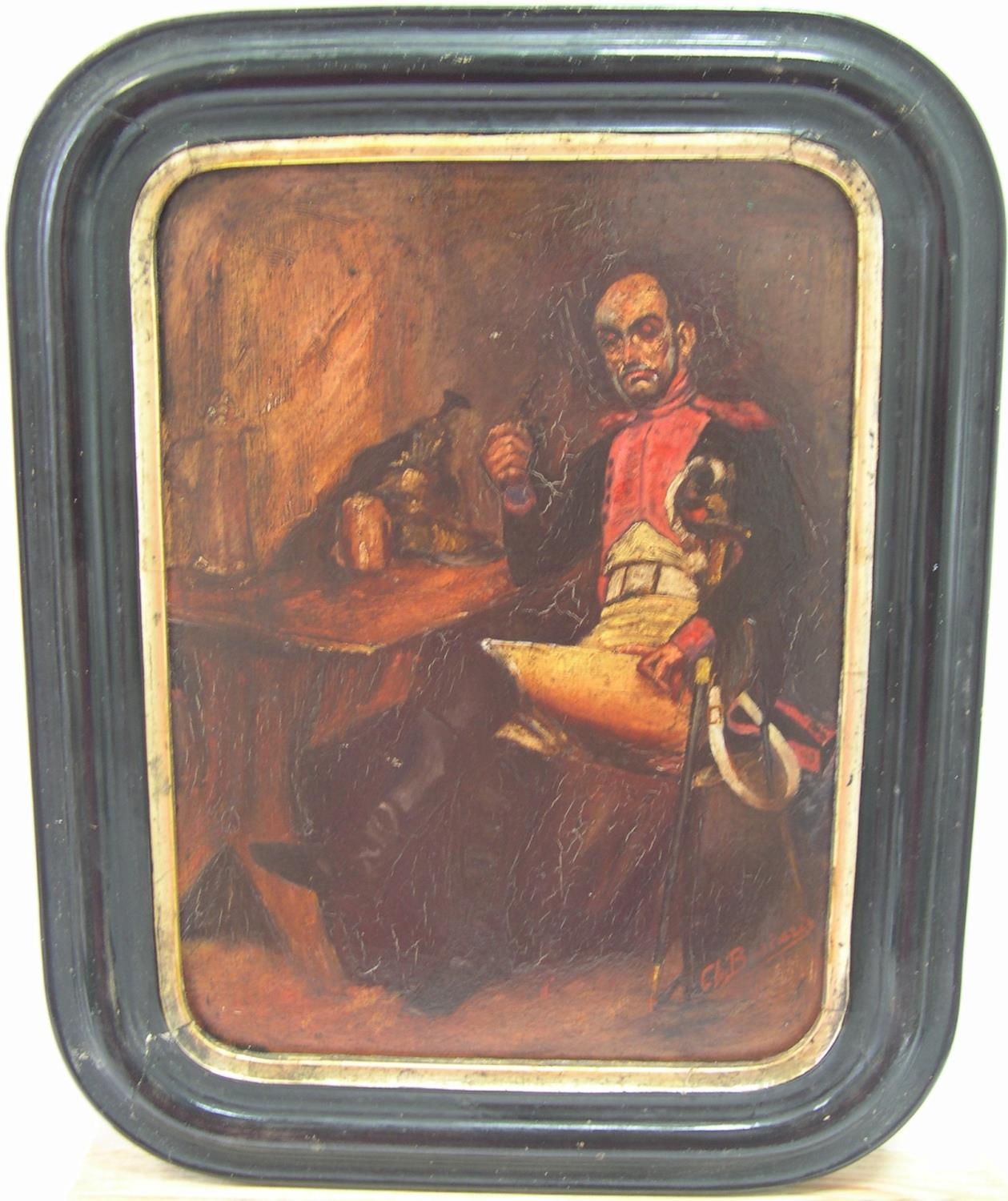 Indistinctly signed 19thC oil on wood panel "French army officer in original ebonsied wood frame,