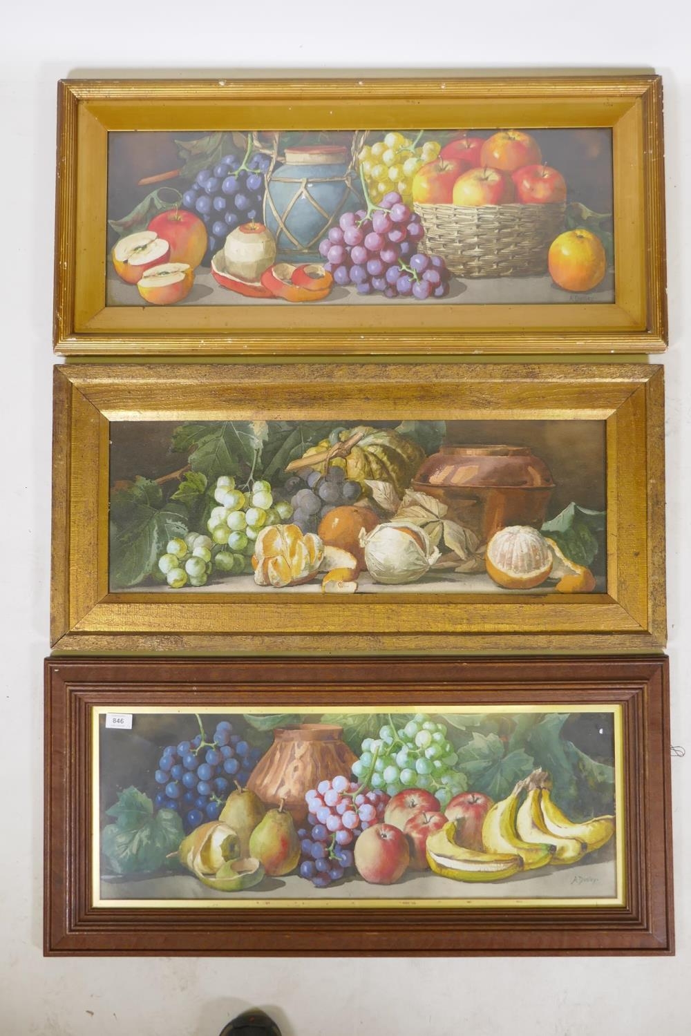 A. Dudley, still life of fruit, three C19th watercolours, largest 30" x 11"