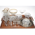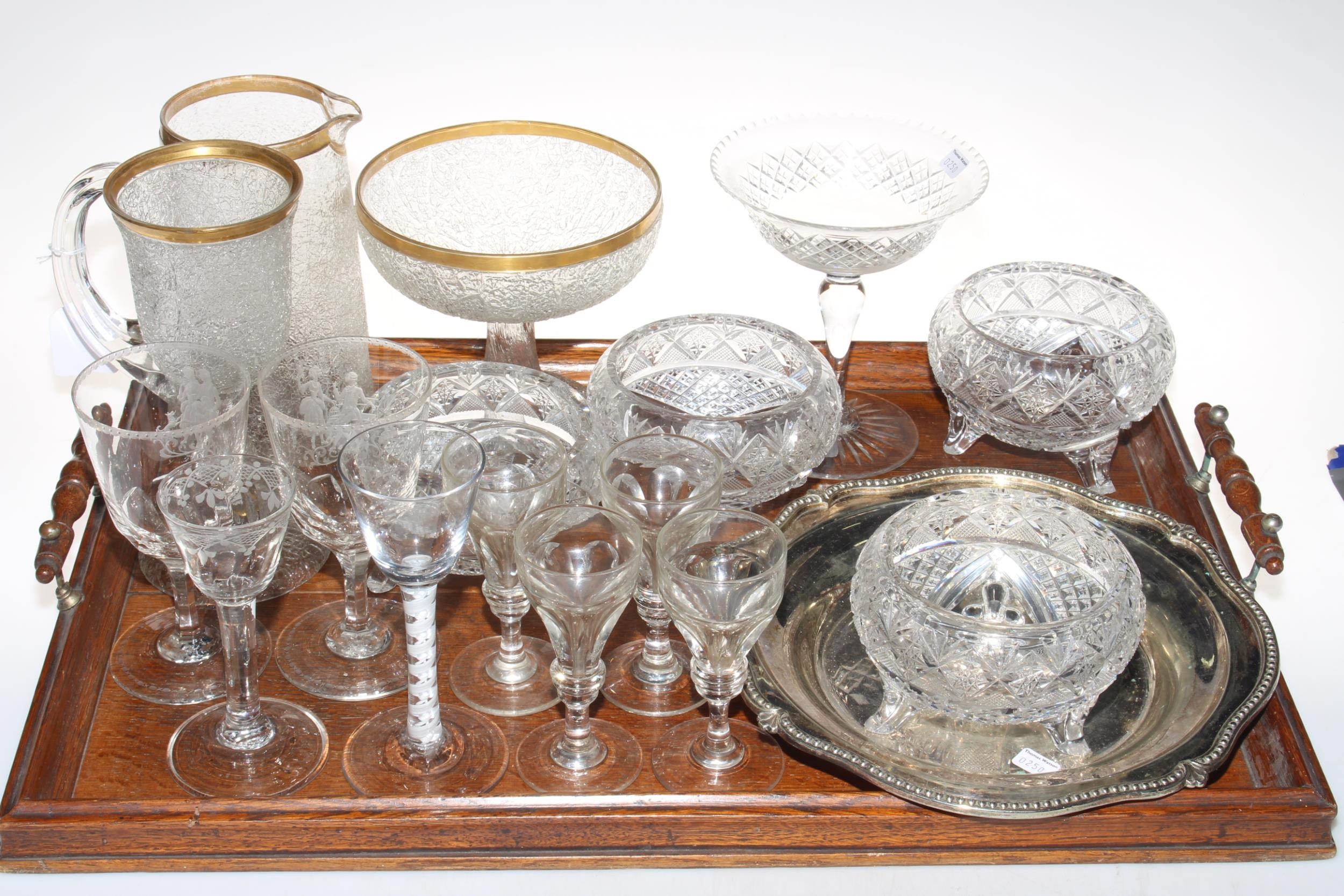 Collection of antique and later glasswares including cotton twist glass, crystal bowls, etc.