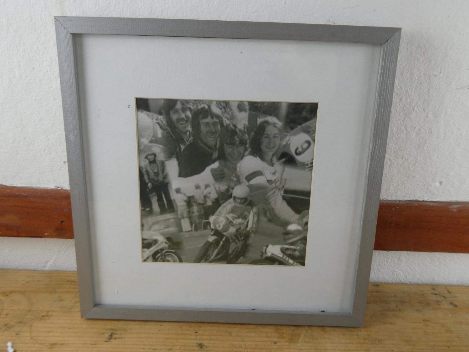 A framed print 'Joey Dunlop'.