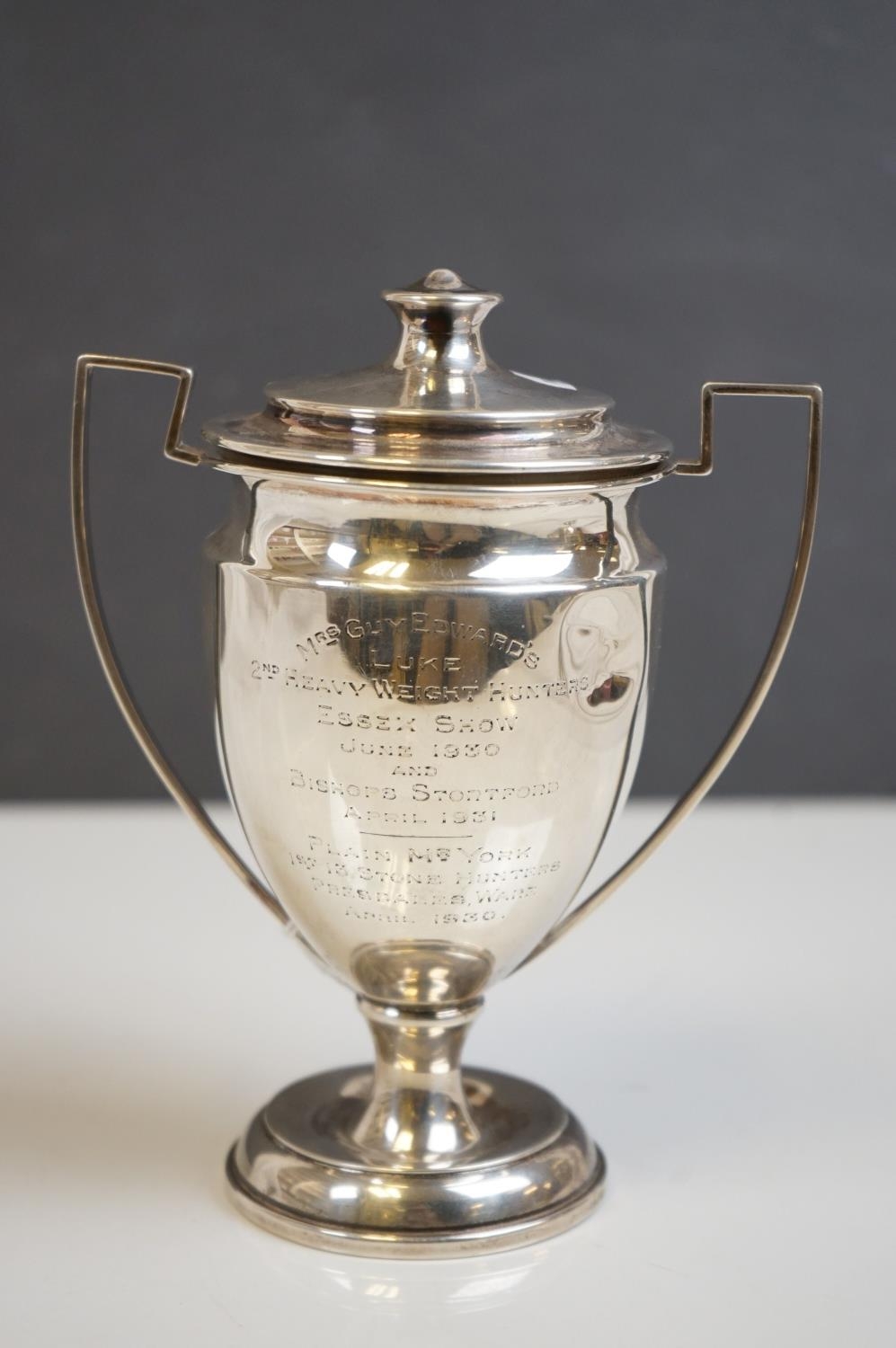 A fully hallmarked sterling silver trophy, engraved to the front Heavy Weight Hunters Essex Show 1930.