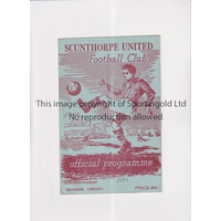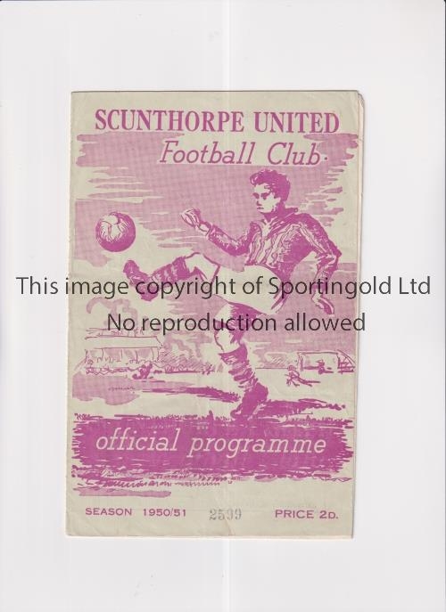 SCUNTHORPE UNITED / 1950-1 FIRST LEAGUE SEASON Programme for the home League match v Darlington 24/3/1951, slight horizontal crease and staple removed. Generally good