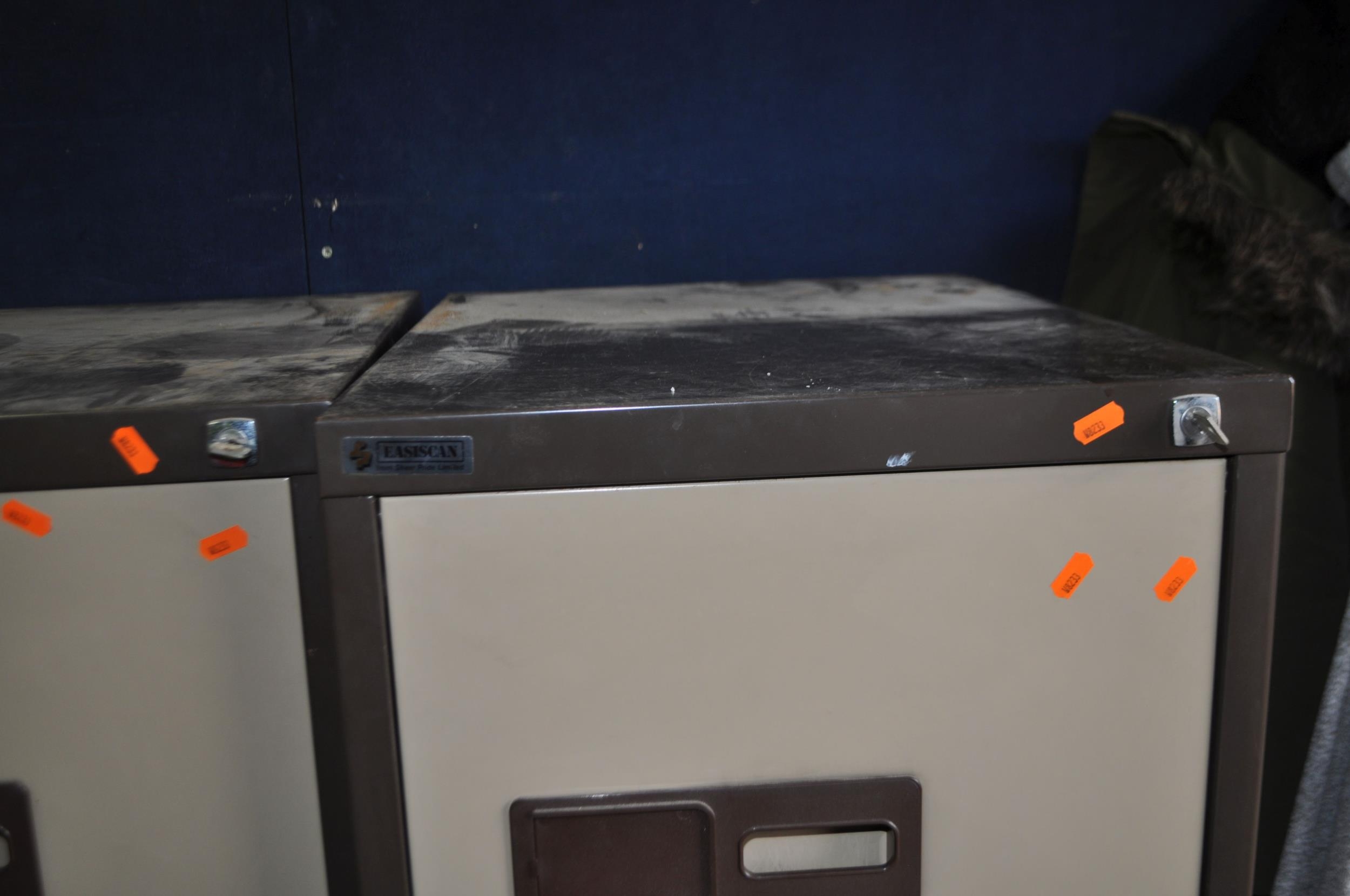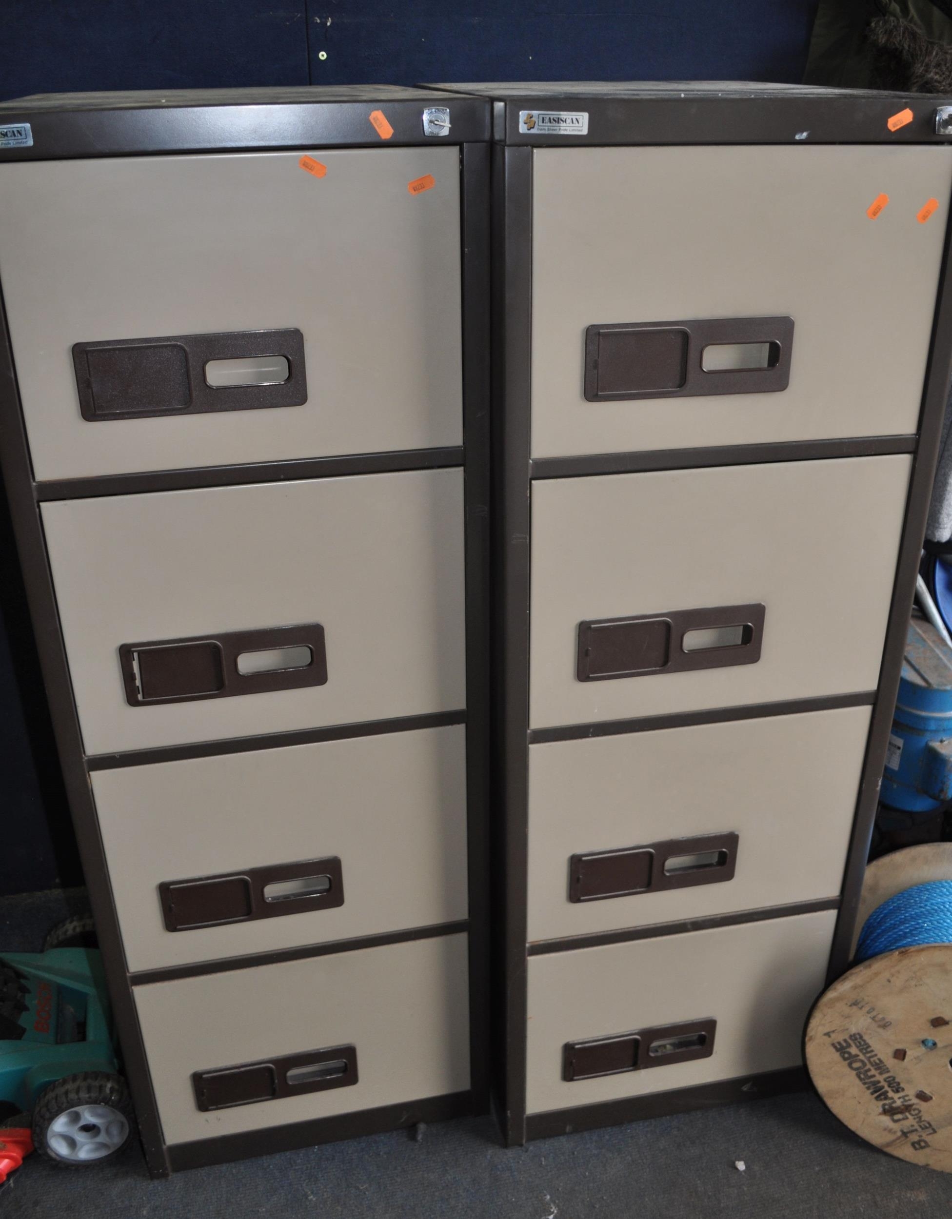TWO VINTAGE 'EASISCAN' FILING CABINETS with four drawers, lock and key to each, width 47cm, depth 62cm, height 132cm